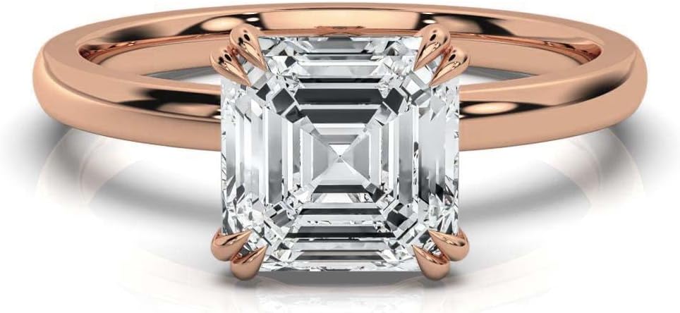 STONE DETAILS :- Main Stone: Moissanite, Main Stone Shape: Emerald Brilliant Cut, Main Stone Weight: 5 CT (11x9 MM) Approx. Main Stone Color: Colorless, Main Stone Clarity: VVS, Main Stone Luster: Excellent,| Side Stone : Round Cut, Stone Color/Clarity : White/VVS1, Side Stone Weight : 0.02 CT Approx.