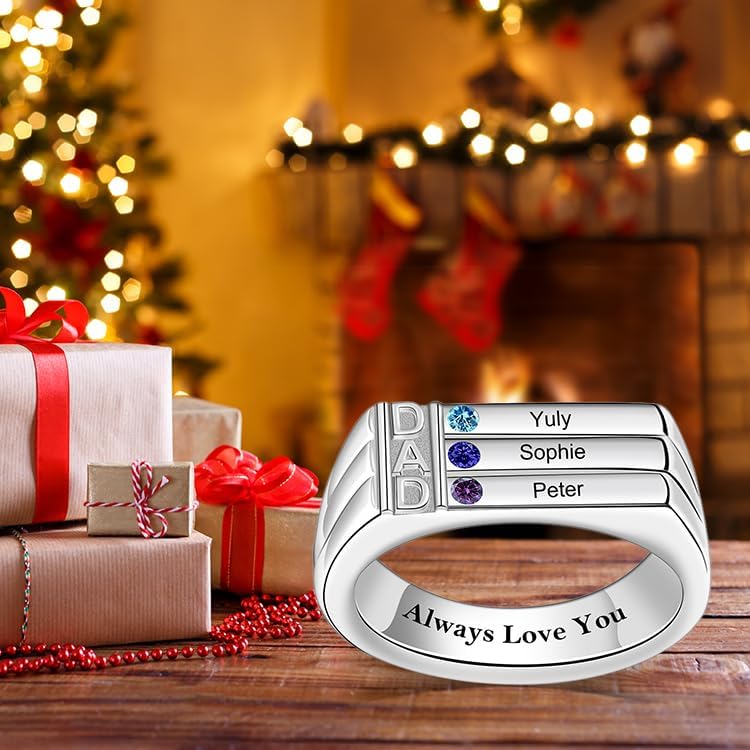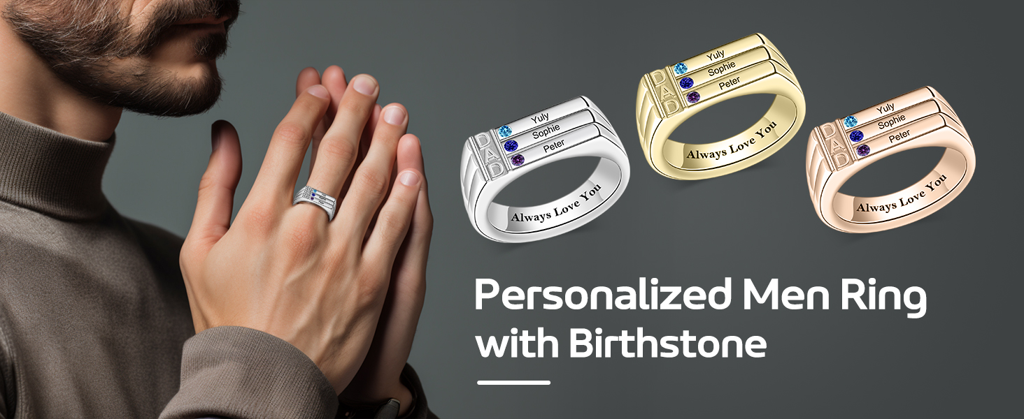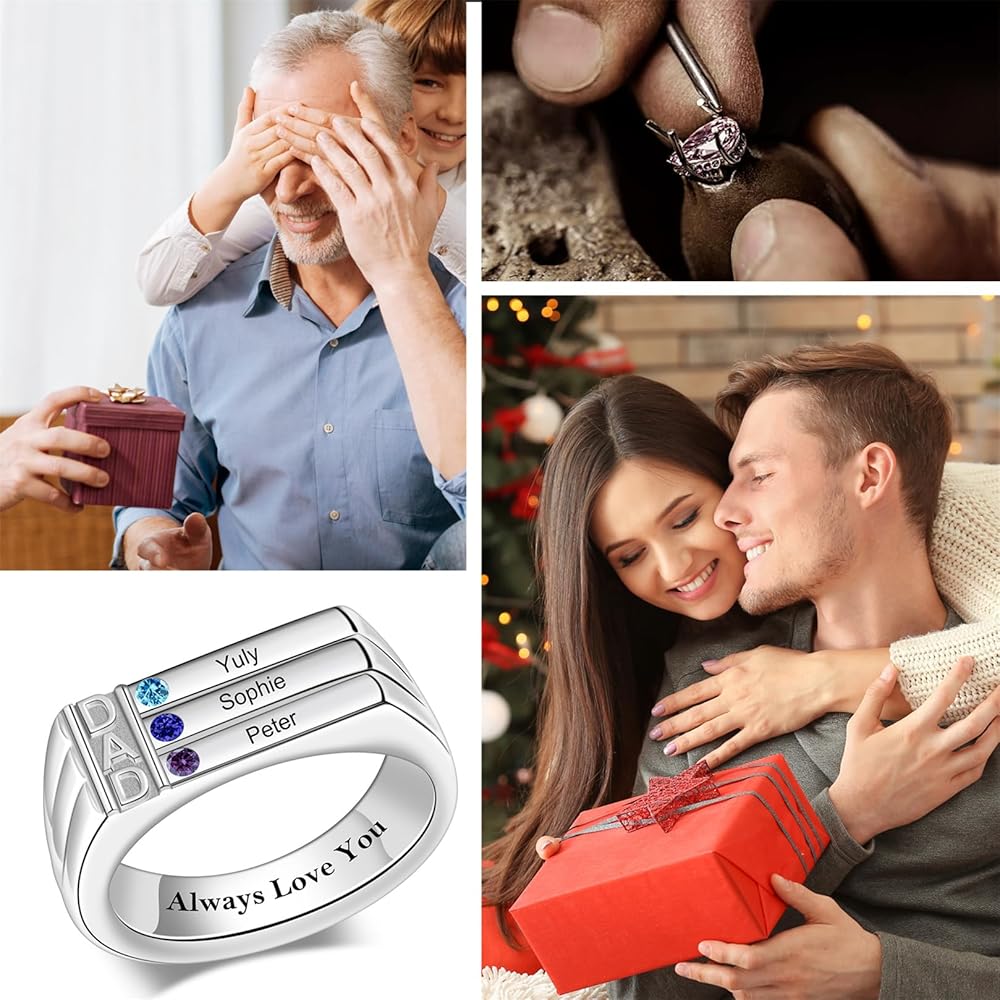 ✔️ [Easy Customization] - Personalizing your dad's ring is simple and straightforward: 1- Choose 3/4 birthstones and colors; 2- Click “Customize Now”; 3- Customize birthstones and names; 4- Customize card. Each ring is custom-made to order, ensuring a unique and special piece.
