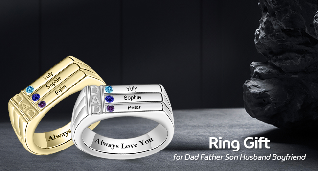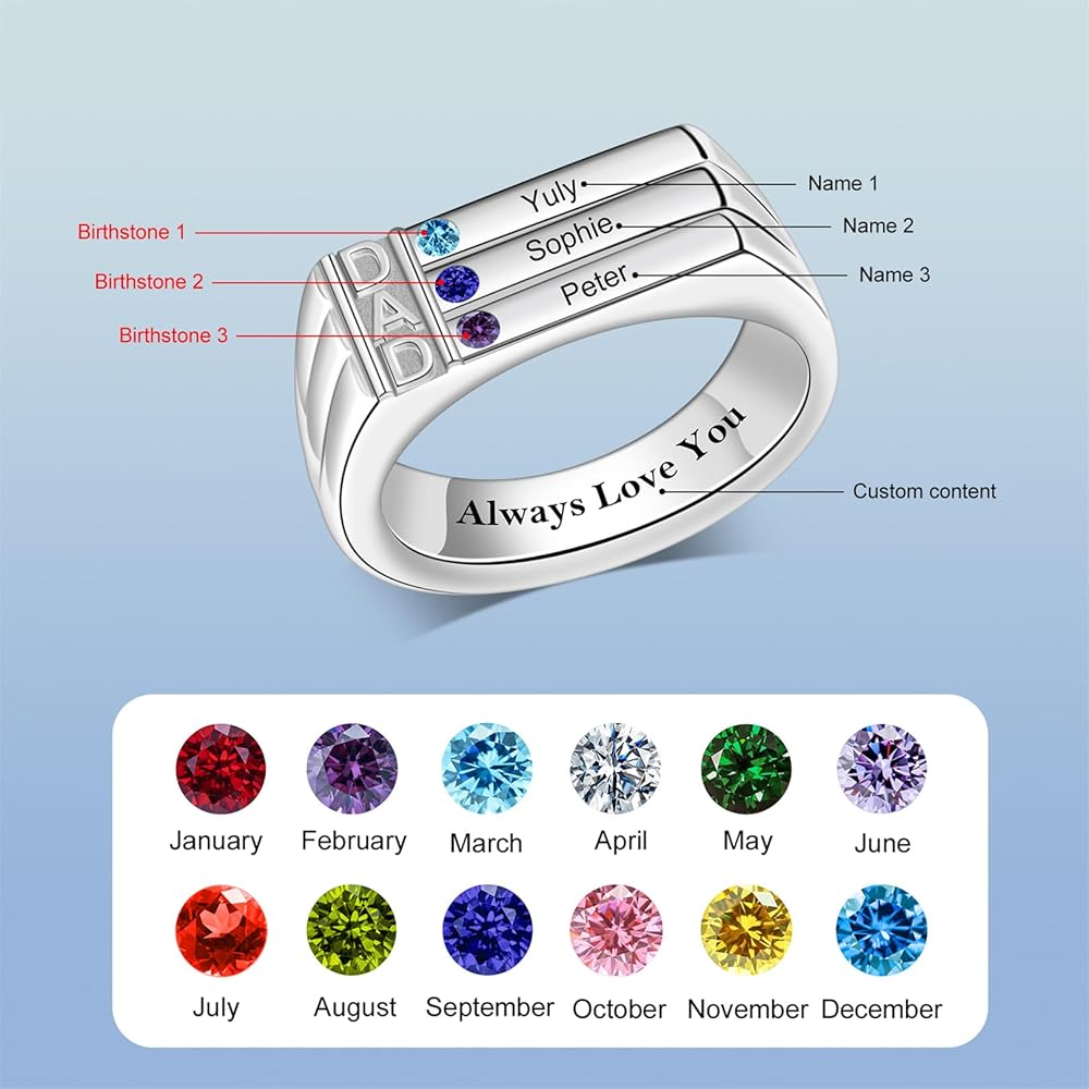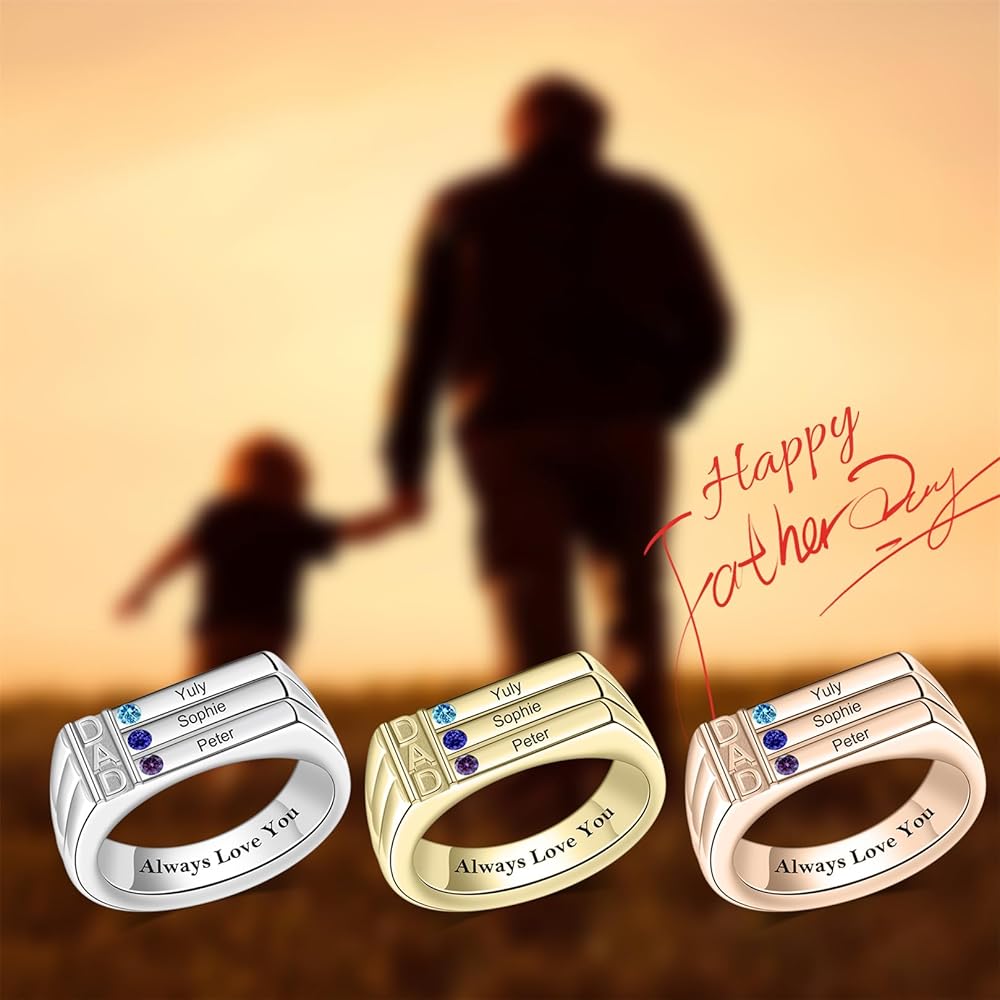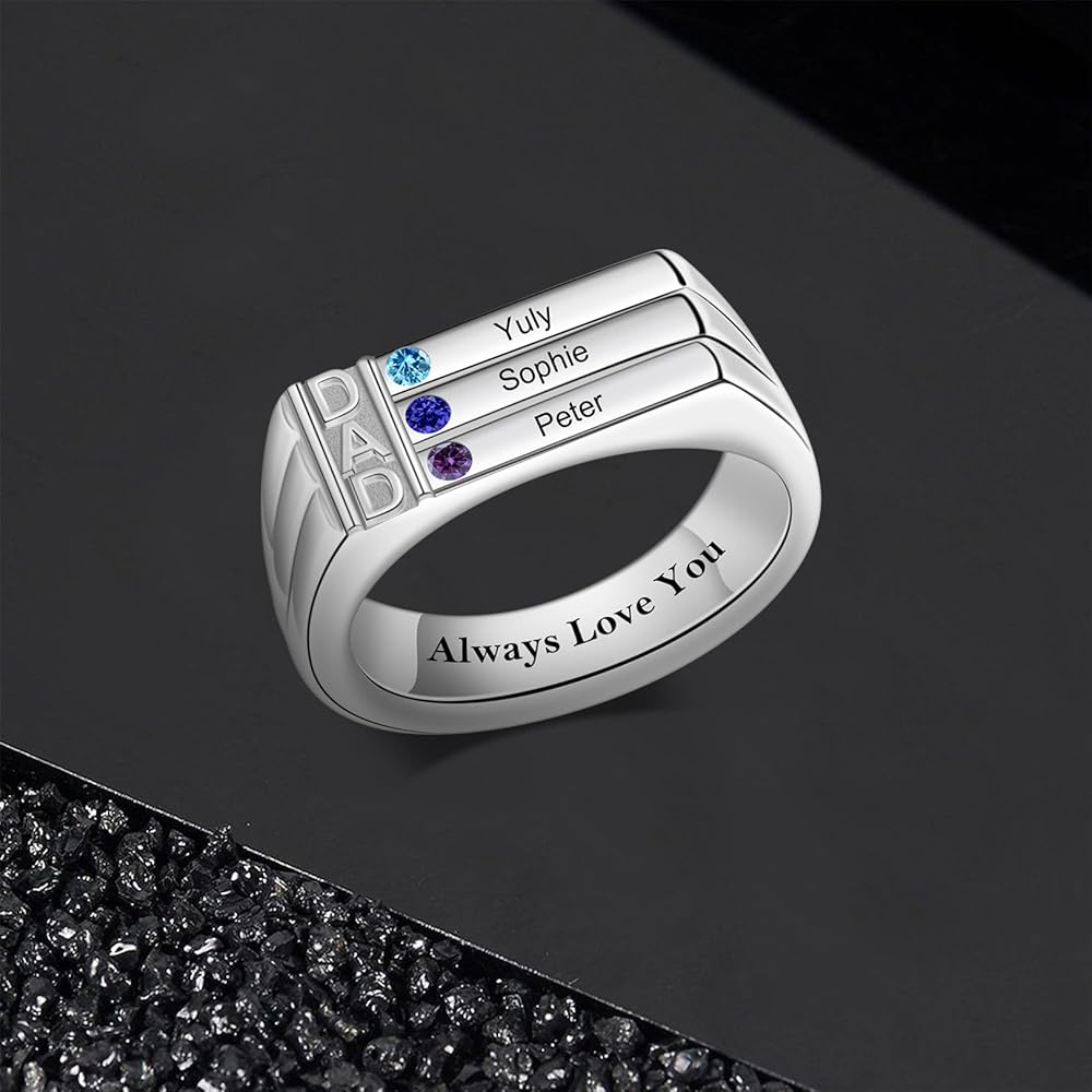 ✔️ [Personalized Dad's Ring] - This custom ring is designed especially for fathers, featuring 3/4 birthstones and engraved names of your choice. It is a meaningful way to celebrate and cherish the bond with his son/daughter.