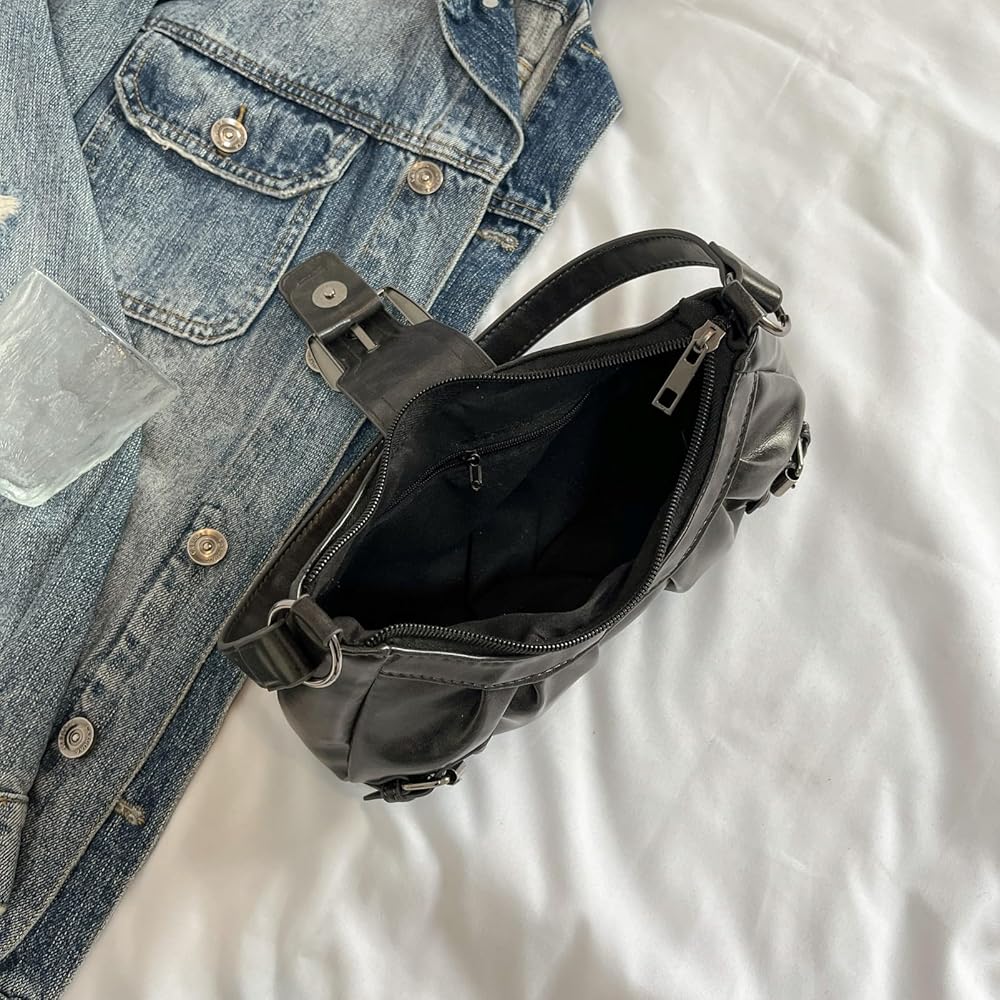 تصميم قديم مستوحى من Y2K مع لمسات معدنية رائعة: تتميز حقيبة اليد هذه بشكل هلال أنيق مستوحى من Y2K، وتتميز بإبزيم معدني مذهل وخياطة دقيقة. إن الجمع بين السحر العتيق والجمال العصري البسيط يجعل من الحقيبة ذات الإبزيم إكسسوارًا متعدد الاستخدامات يرتقي بأي زي، من الدنيم إلى الملابس الرسمية