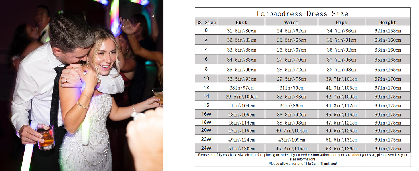 المقاس: لاختيار المقاس الصحيح، يرجى الرجوع إلى جدول المقاسات قبل الشراء. إذا كنت تريد فستانًا مصنوعًا حسب الطلب، فاختر المقاس الأقرب إلى مقاسك الخاص وقم بتوفير قياسات الصدر والخصر والأرداف ومن أسفل إلى الأرض، ثم سنقوم بتخصيص هذا الفستان لك دون أي تكلفة إضافية. إذا كنت لا تزال غير متأكد، يرجى إبلاغنا قبل الشراء وسنبذل قصارى جهدنا لمساعدتك!