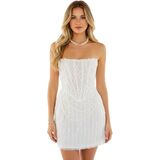 التصميم: فساتين زفاف لؤلؤية للنساء، فستان زفاف بدون حمالات 2026، فستان زفاف ضيق، فساتين حفلة موسيقية قصيرة على شكل حرف A للنساء، فساتين رسمية أنبوبية للنساء، فستان حفلات مسائية مزين بالترتر. التصميم الكلاسيكي بدون حمالات يحدد ببراعة منحنيات الكتفين والرقبة. زخارف اللؤلؤ والترتر الرائعة تجعل هذا الفستان يبدو أكثر فخامة وأناقة. ارتدائه، سوف تكون مركز الاهتمام. تحت أنظار الجميع، سوف تتألق بتألقك الفريد.