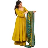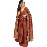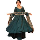 Upgrade your festive collection with this women's flared Anarkali suit with dupatta, designed to add elegance to weddings, parties, Diwali, Eid, and family gatherings. This stitched flared Anarkali gown in premium Chinon fabric features beautiful embroidery, offering a flowing silhouette and graceful movement for special occasions. The matching Chinon bottom is stitched for comfort and a flattering fit, complementing the flared Anarkali style. Completing the ensemble is a lightweight Chinon dupatta, adding a soft, festive drape to your look. This flared Anarkali suit has a length of approximately 48 inches and is available in two beautiful colors with sizes S, M, L, XL, XXL, ensuring a fit that suits different body types while maintaining comfort and style. Whether worn for a sangeet, festive party, or as a thoughtful gift, this Anarkali suit blends timeless Indian tradition with modern elegance.