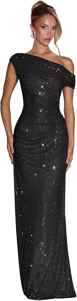 Features: Mermaid one shoulder prom dresses for women, sparkly sequin prom dresses for teens, long wedding guest dresses, bodycon prom dress, build in bra, zipper closure