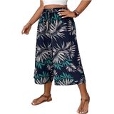 • Feature: tropical plant print,high waist,elastic belt,wide leg,capri length,boho style,loose fit