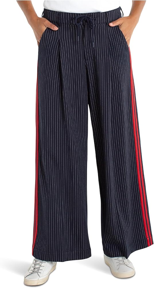The Liverpool Los Angeles High-rise Wide Leg Pleated Trousers With Side Stripe 30" Inseam are versatile pants that are essential for every wardrobe, effortlessly transitioning through all seasons. They are cut in a wide-leg silhouette with a high-ris