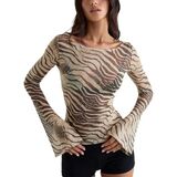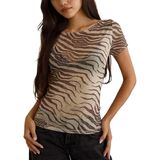 This zebra print see through T Shirt is mainly made of polyester fiber. The fabric is soft, comfortable to wear, light, sweet and cute, and laid-back and pleasant. It is suitable for daily outfits in autumn and winter
