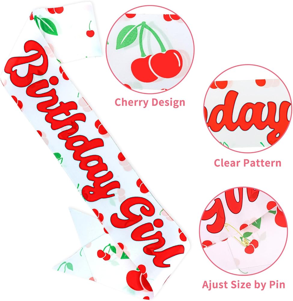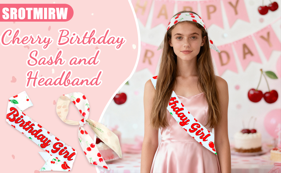 Elevate Your Cherry Theme Party: This matching cherry headscarf and bold "Birthday" sash combo instantly boosts your party theme, serving as both eye-catching decor and fun, wearable elements for the guest of honor. Create a cohesive and celebratory party atmosphere.