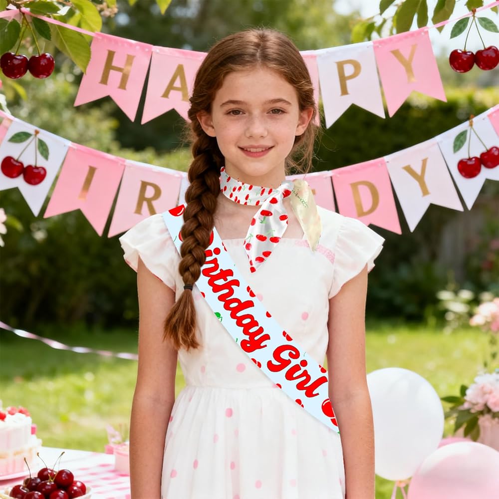 Cherry-Themed Birthday Set: This matching set includes a cheerful cherry print headscarf and a delightful "Birthday Girl" cherry print sash——the perfect accessories to complement cherry-themed birthday party decorations. Bring your birthday to life with our vibrant cherry pattern design.