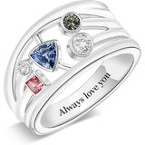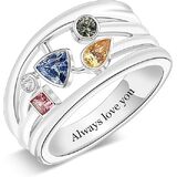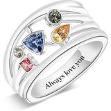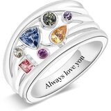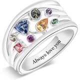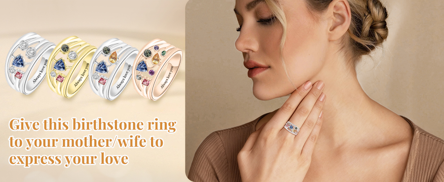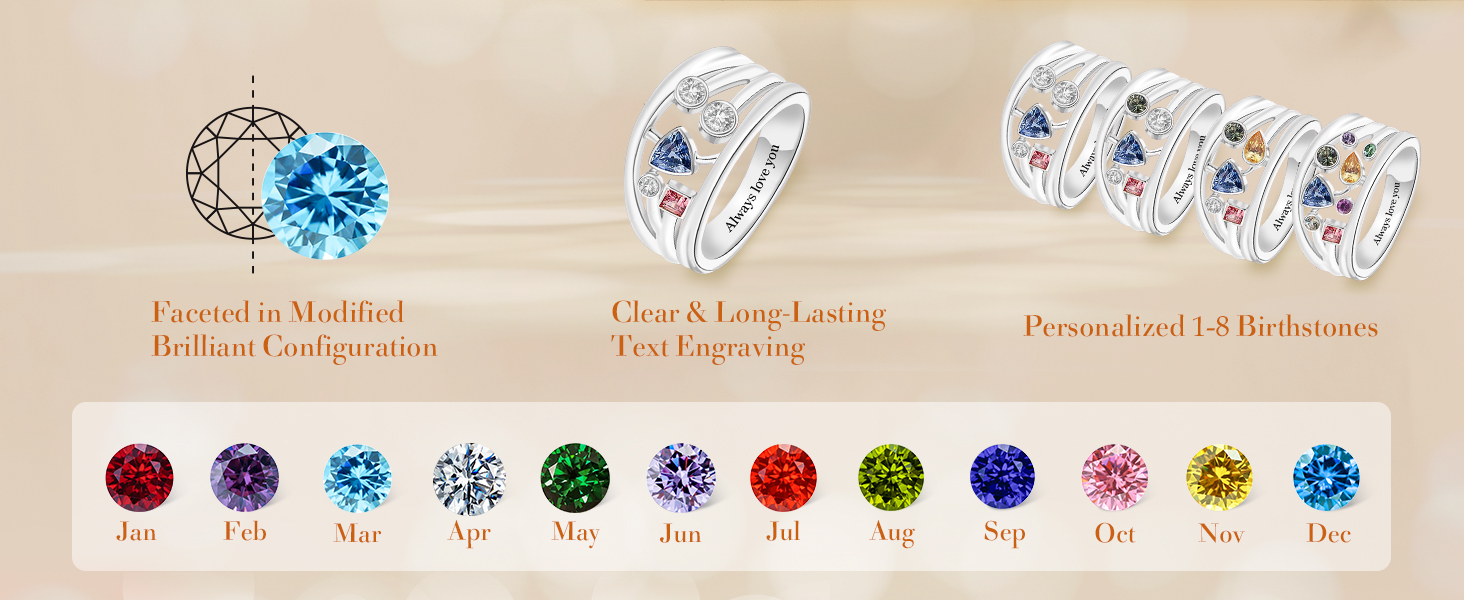 【How to Get】1-Choose the number of birthstones; 2-Click "Customize Now"; 3-Type the text. Name or meaningful words can be engraved on the inner side. Each ring has classic and elegant silver, gold and rose gold.