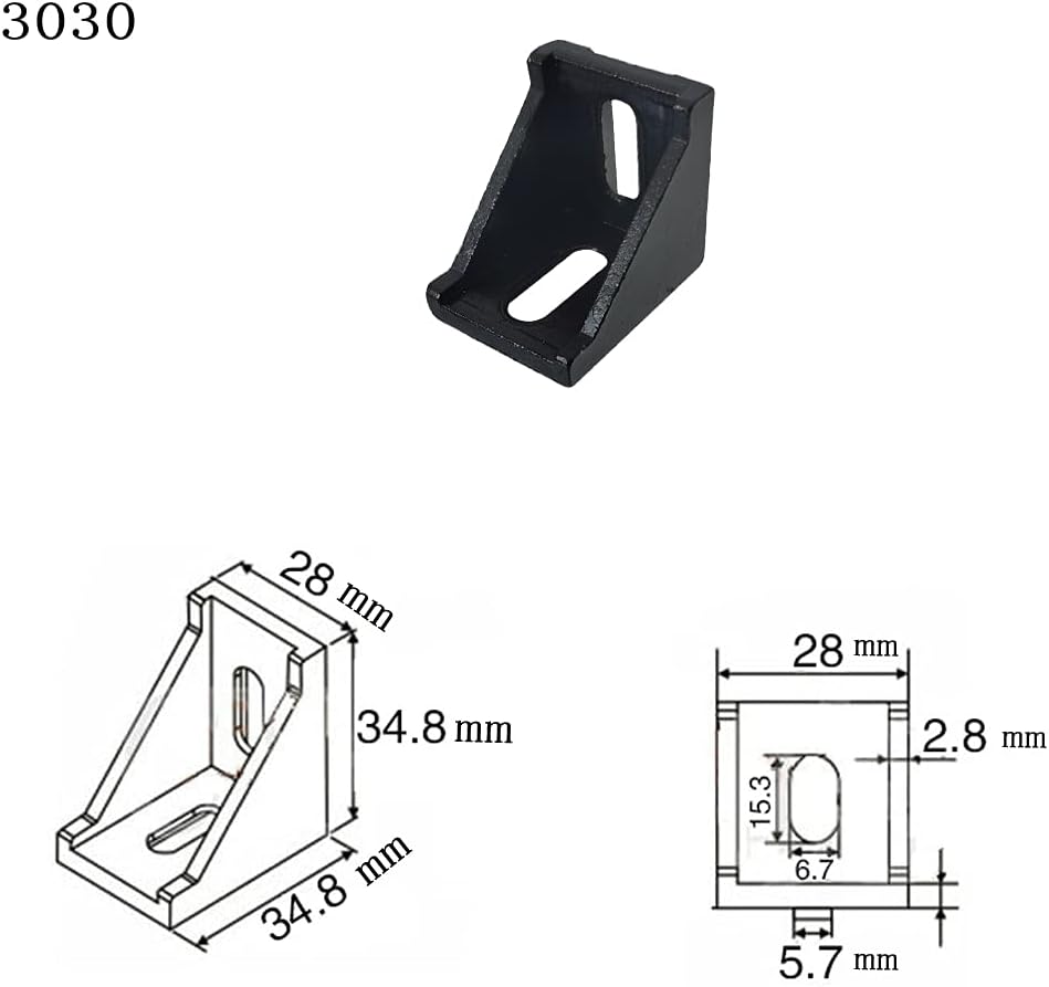 10 عبوات 3030 دعامة زاوية داخلية سوداء مجمعة لفتحة ملف بنتوء من الألومنيوم 3030 8 مم، 35 × 35 × 28 مم