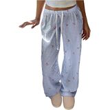 • Features: Bow print, elastic waist, low waist, straight leg, spring fall pants for women