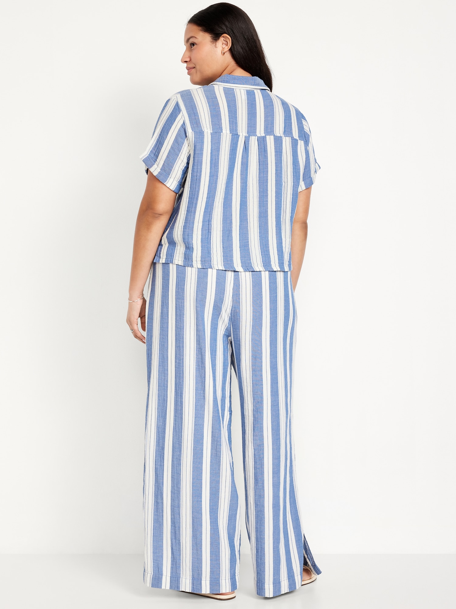 بنطال Old Navy عالي الخصر من الشاش المجعد واسع الساق - شريط أزرق - 2X