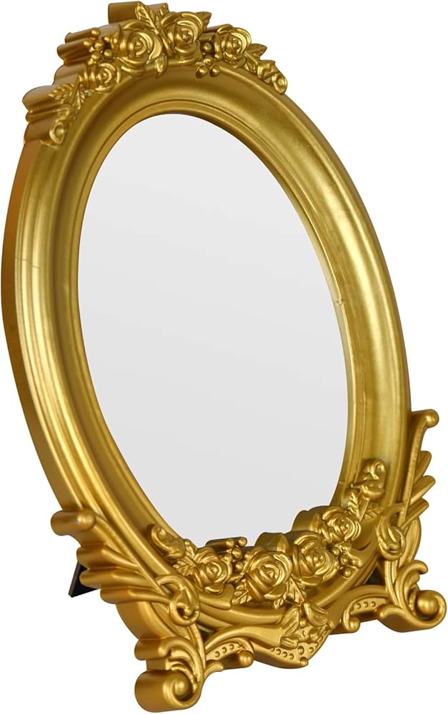 مرآة حائط بيضاوية كلاسيكية من Wartter، مزينة بإطار زهور ذهبي مزخرف، مرآة تزيين مزخرفة (9.8 × 6.5 بوصة) (ذهبي)