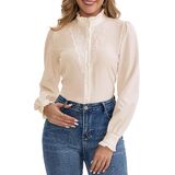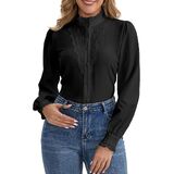 المزايا: قمصان أنيقة للسيدات ذات ياقة واقفة، ورقبة وهمية، وزخرفة مكشكشة، وأكمام طويلة، وأزرار لأعلى، ونمط عتيق، وتصميم كروشيه فريد من نوعه من الدانتيل على الجهة الأمامية مما يجعل هذه السترة أكثر تميزًا وجاذبية.