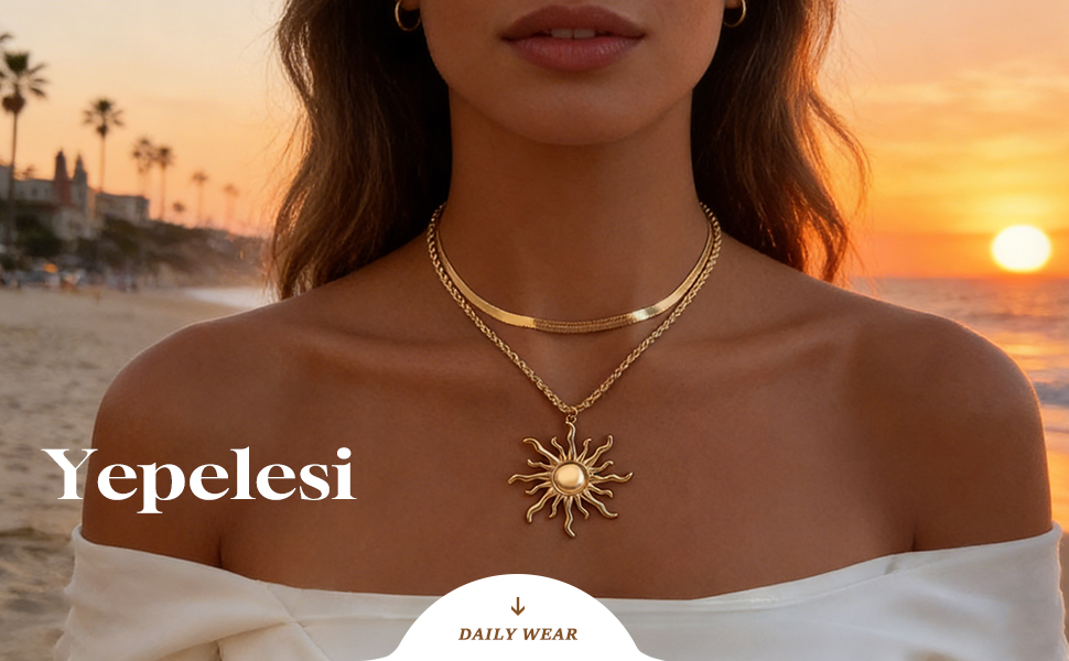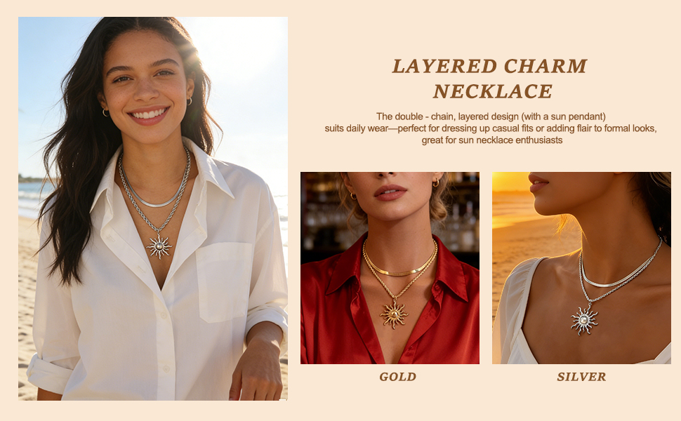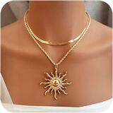 Sun Necklace for Women: Designed for women, this sun necklace blends fashion and versatility. The double - chain, layered design (with a sun pendant) suits daily wear—perfect for dressing up casual fits or adding flair to formal looks, great for sun necklace enthusiasts