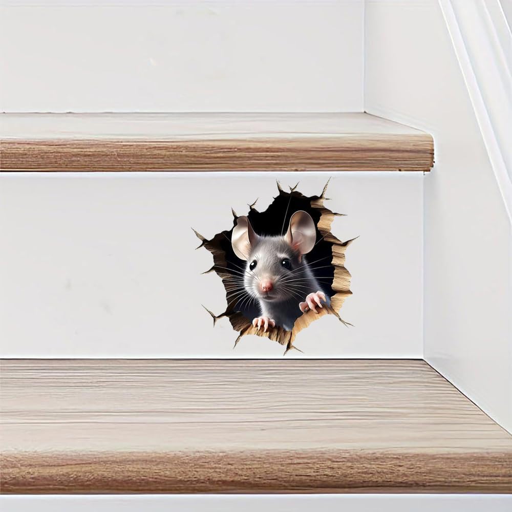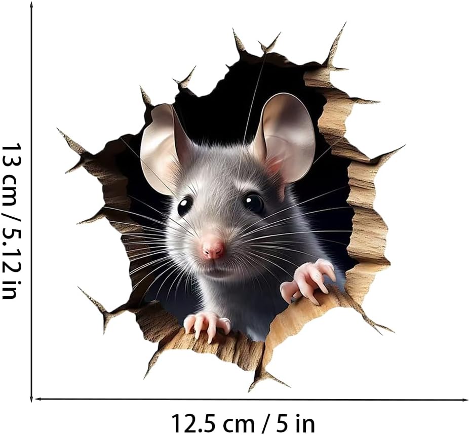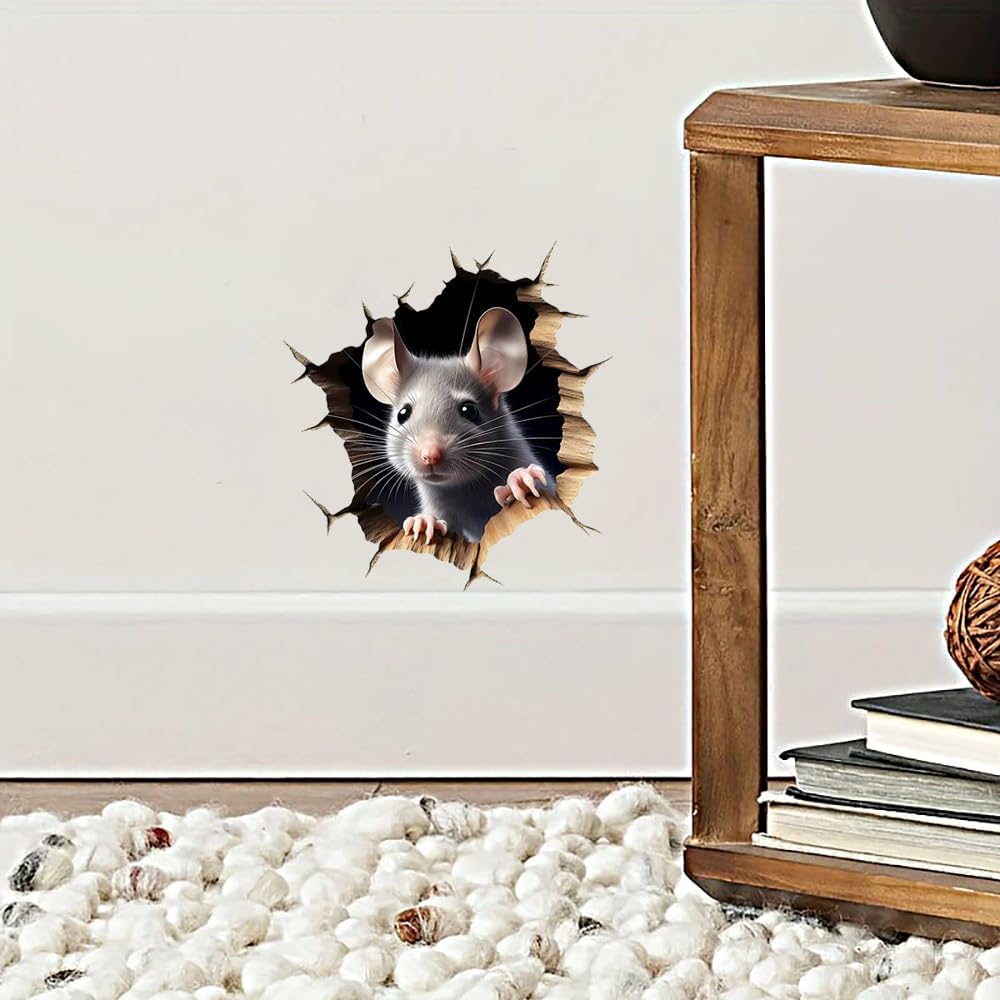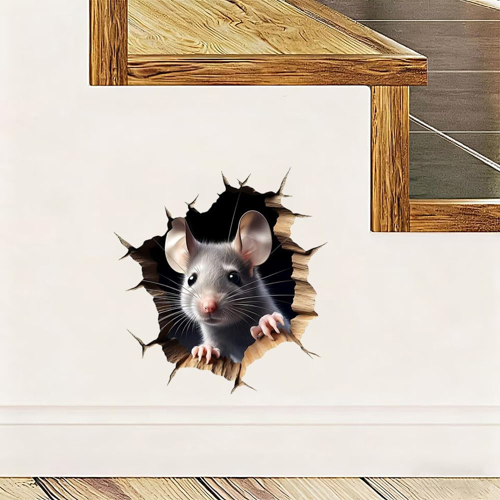 3D VISUAL EFFECT: Realistic mouse peeking through a torn hole design creates an eye-catching three-dimensional illusion that adds whimsy and character to any space