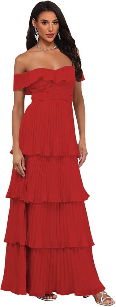 RBPAAB قبالة الكتف الكشكشة المتدرجة فساتين وصيفة الشرف 2026 الشيفون الطيات فستان سهرة رسمي فستان حفلات طويل in Kuwait