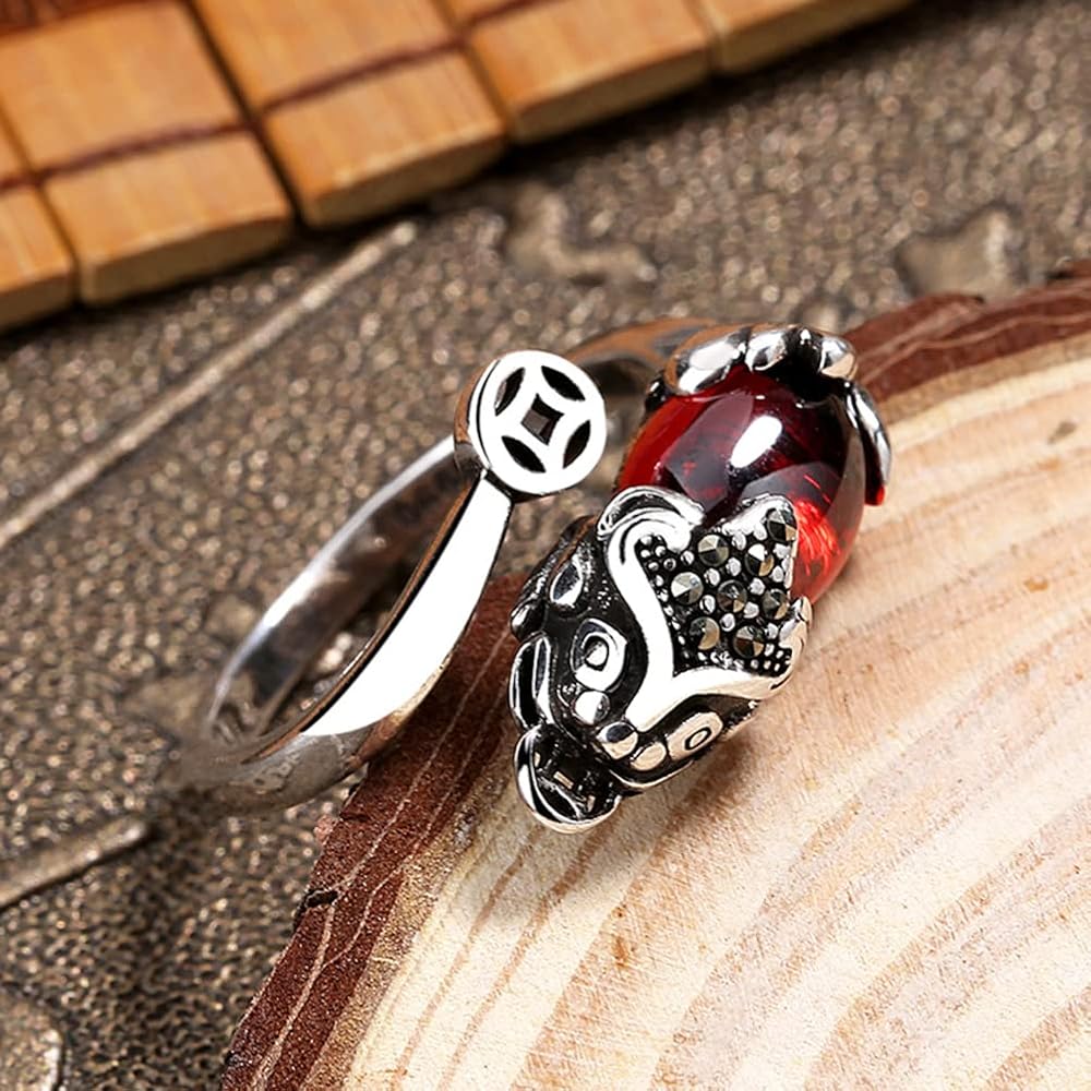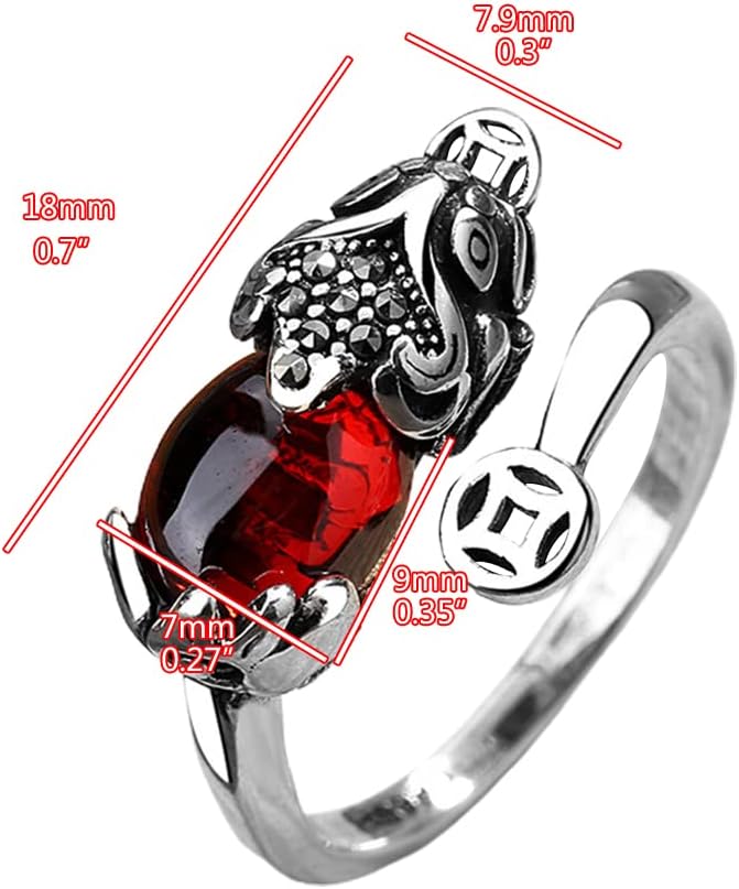 Description: Material: Copper Style: retro, fashion, stress relief Color: vintage silver Size: Pixiu Length: about 18mm, width: about 7.8mm, garnet: about 7*9mm Weight: about 4g Package Included: 1 x Pixiu Ring Notes: Due to the lighting effects and shooting angles, there is color difference in the product, please understand. Due to manual measurement, there is a tolerance in the product size.