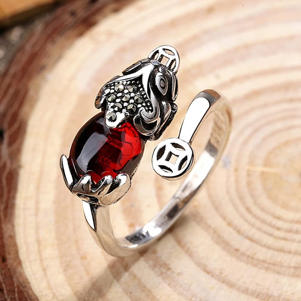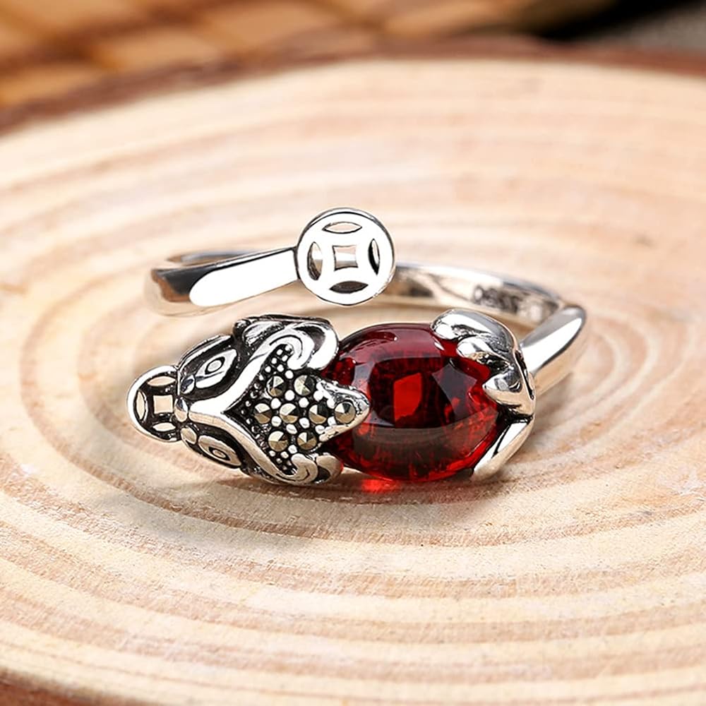 Ring design: sterling silver Pixiu inlaid with gems on the back, symbolizing auspicious movement and warding off evil spirits.