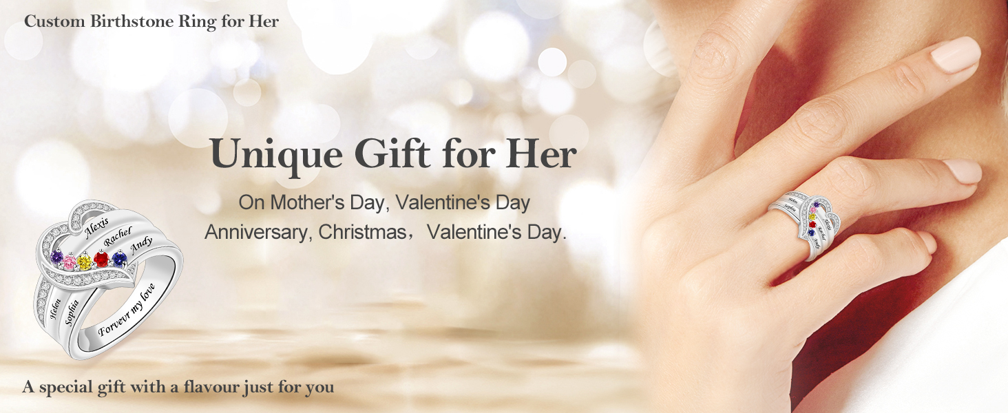 【Excellent Gift】This birthstone family ring for women is a great gift for mom, grandmother, mother, sister, wife on Mother's day, Christmas, birthday, anniversary day. If you want a beautiful jewelry box, just choose the gift packaging when customizing.