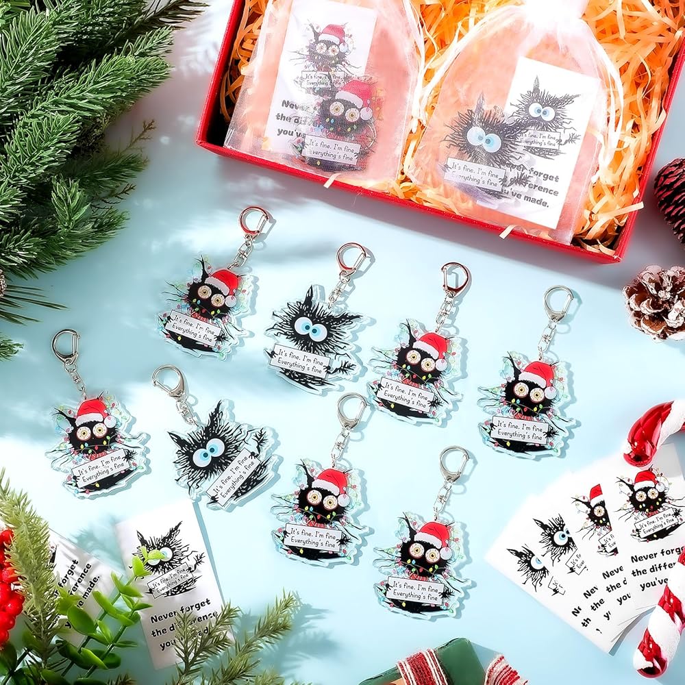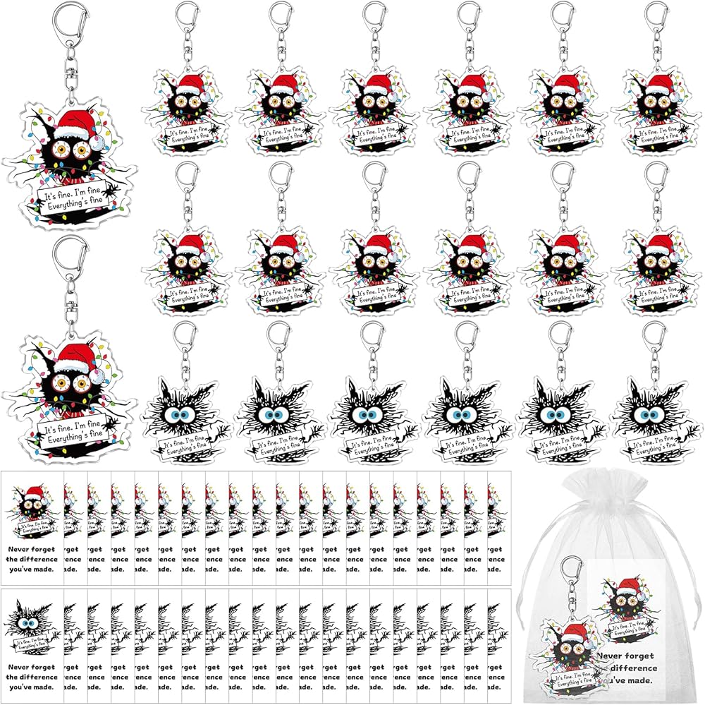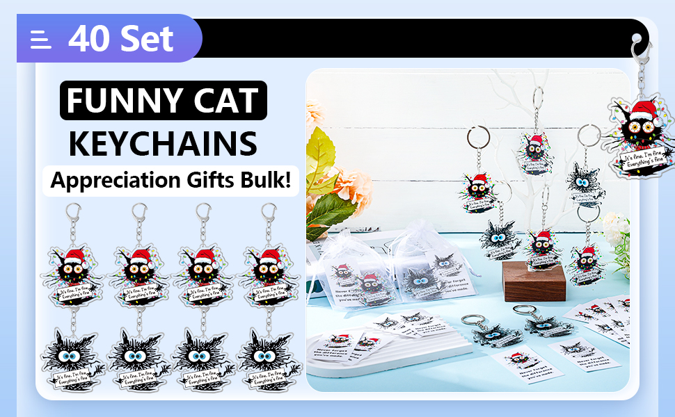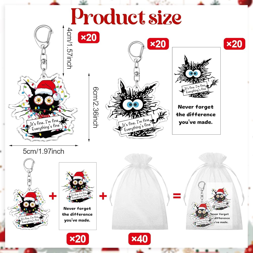 hkoytiup 40 مجموعات عيد الميلاد الإيجابية سلاسل المفاتيح الهدايا الموظف التقدير السائبة مضحك القط الأسود المفاتيح مع أكياس الأورجانزا وانها غرامة كل شيء بطاقات غرامة لزملاء العمل فريق القط عشاق النساء