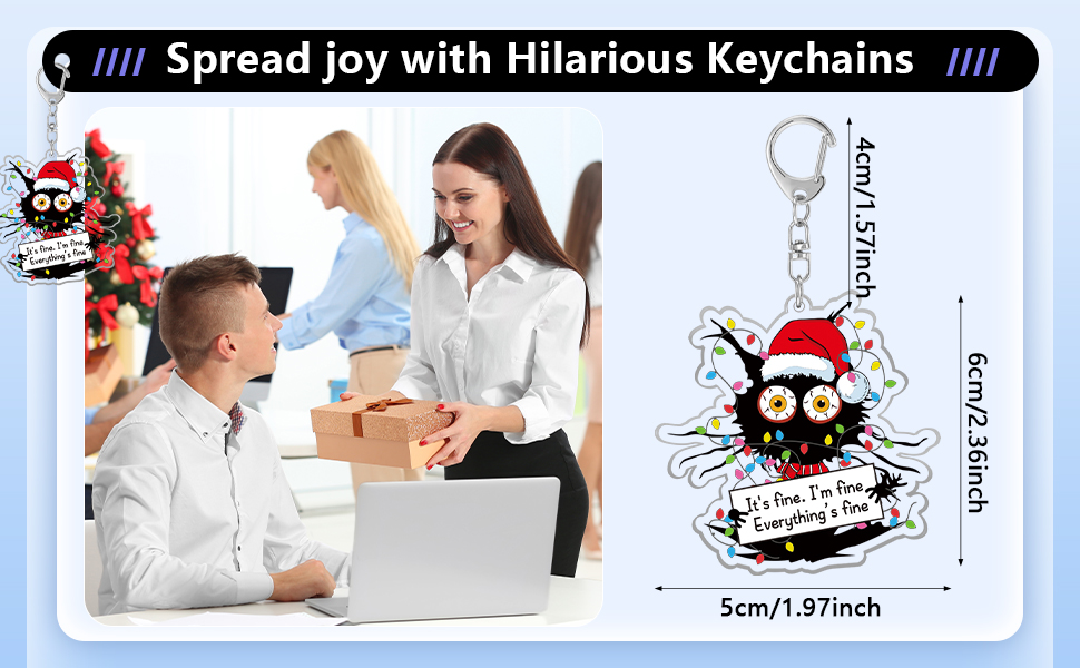 • خفيفة الوزن وقابلة للحمل: على الرغم من تصميمها الفكاهي، فإن سلسلة مفاتيح عيد الميلاد صغيرة الحجم وقابلة للحمل. الحجم الصغير يجعل من السهل حملها بمفاتيحك أو حقيبة الظهر أو محفظتك أو حتى ربطها بسحاب لمزيد من السحر