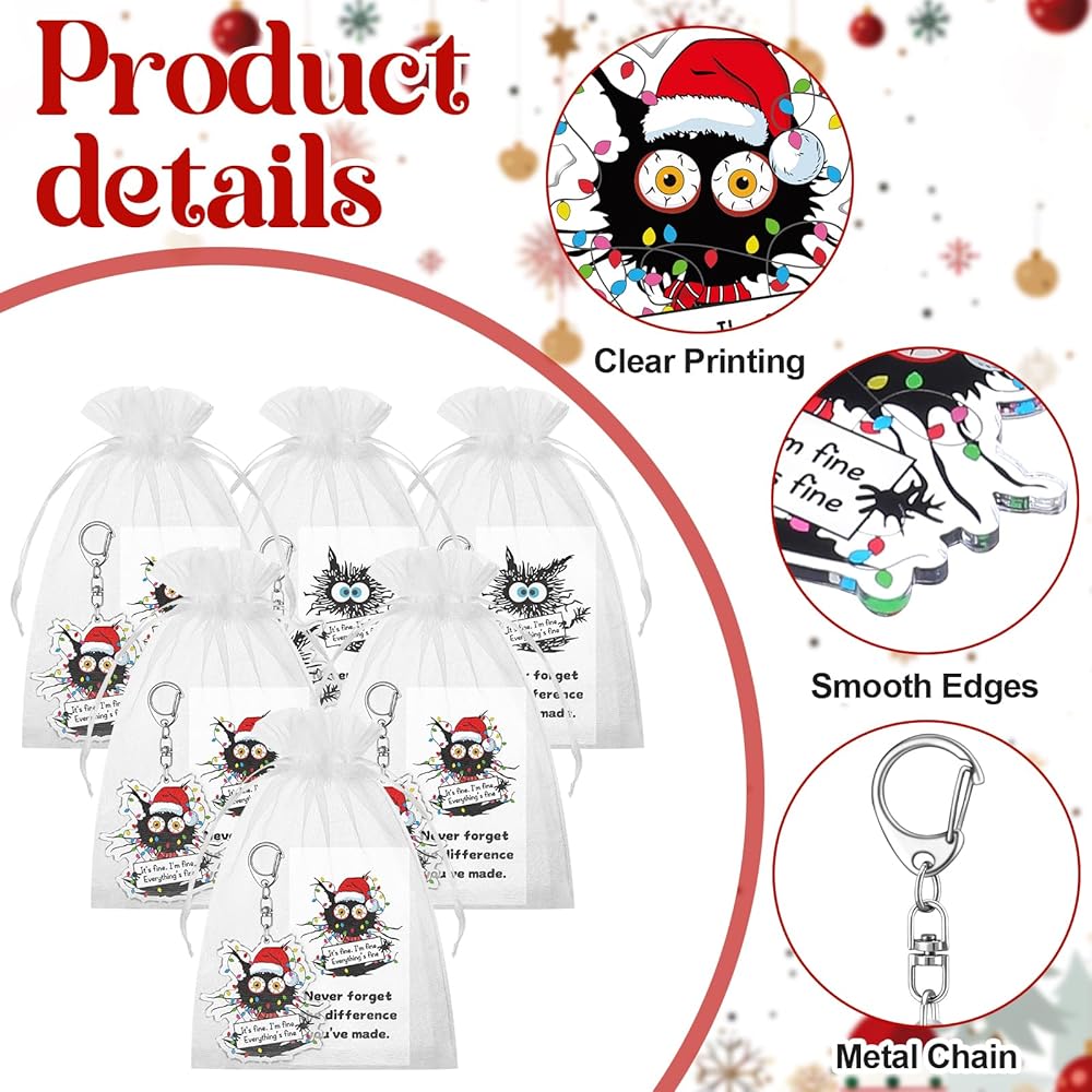 • جاهزة للهدايا: تأتي سلسلة مفاتيح القطة السوداء لعيد الميلاد مع حقيبة من الأورجانزا وبطاقة رسائل جميلة، كما أنها مثالية كأشياء رائعة لهدايا عيد الميلاد، أو هدايا سلة الهالوين، أو هدايا عيد الميلاد الصغيرة، أو هدية الفيل الأبيض، أو لمجرد المفاجأة.