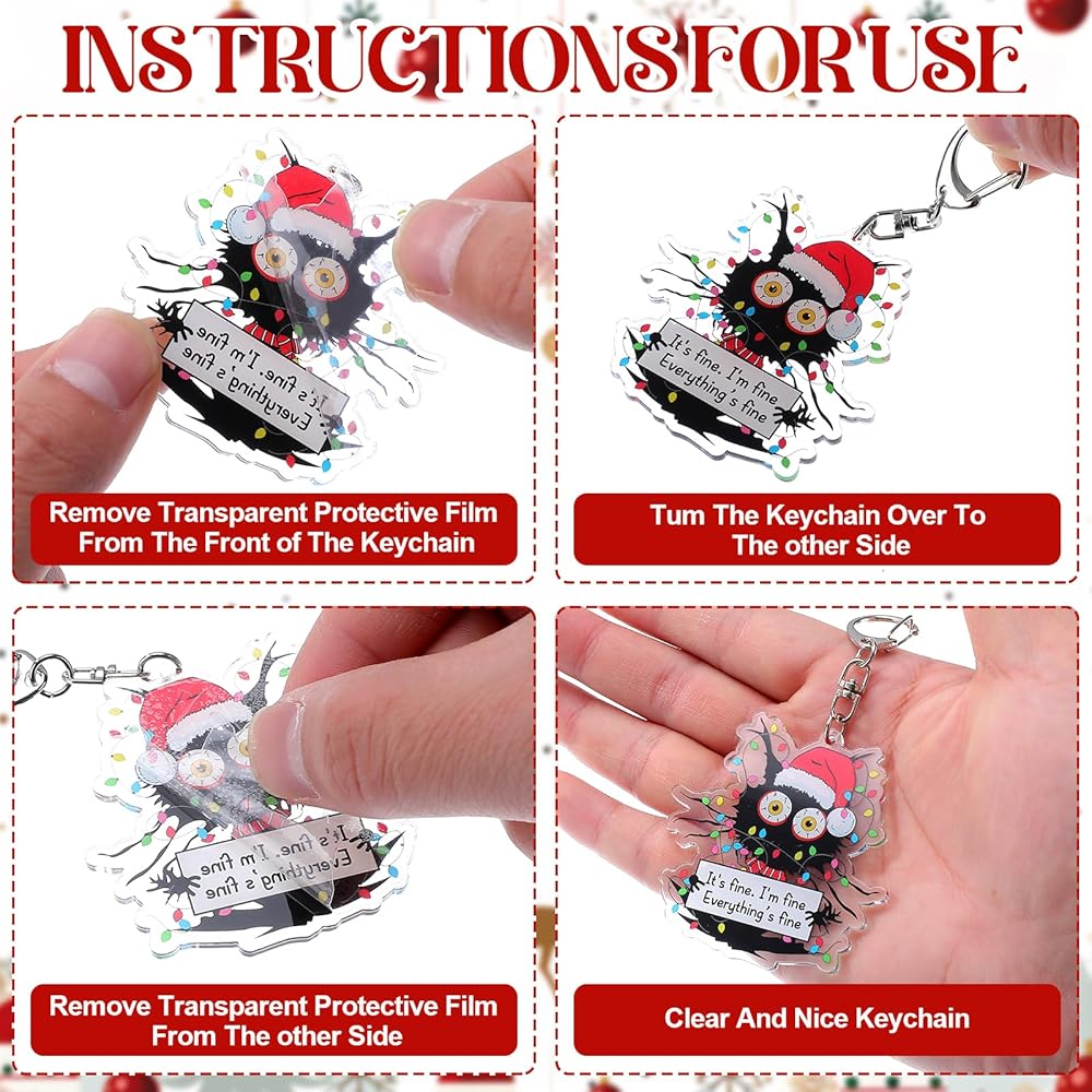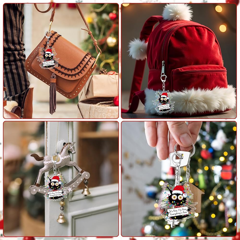 • تصميم فريد: سلاسل مفاتيح زينة عيد الميلاد على شكل قطة سوداء للنساء والرجال، يمكنك إضفاء الطابع الشخصي عليها بجماليات مرحة لحقيبتك أو محفظتك أو مفاتيح السيارة أو مفاتيح المنزل، اصنع نمطًا جذابًا أينما ذهبت