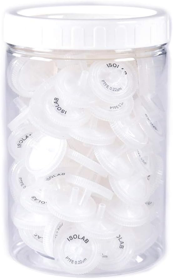 حجم المسام 0.22 ميكرومتر وهي مصنوعة من البولي تترافلوروإيثيلين.