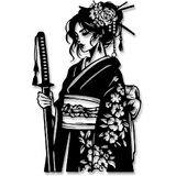 Celebrate the strength and spirit of the warrior with our Female Samurai Metal Wall Art Collection. Meticulously laser-cut from premium, weather-resistant steel, each piece masterfully fuses dynamic anime artistry with timeless Japanese tradition. The rich matte black finish intensifies every intricate detail – from the flowing hair and detailed armor to the stylized katana – casting dramatic, captivating shadows in ambient light.