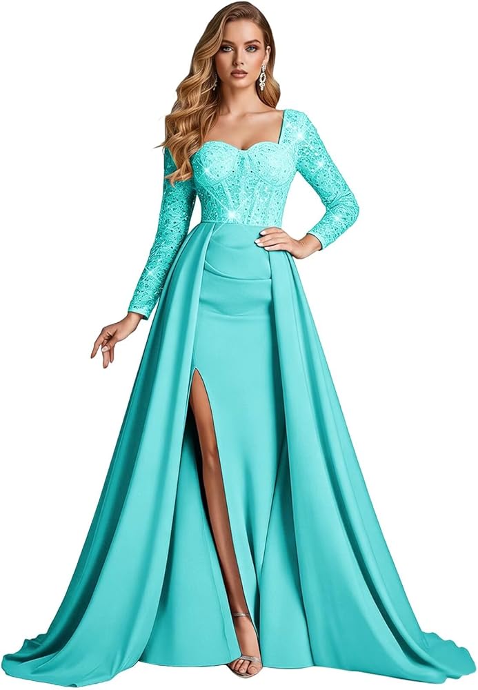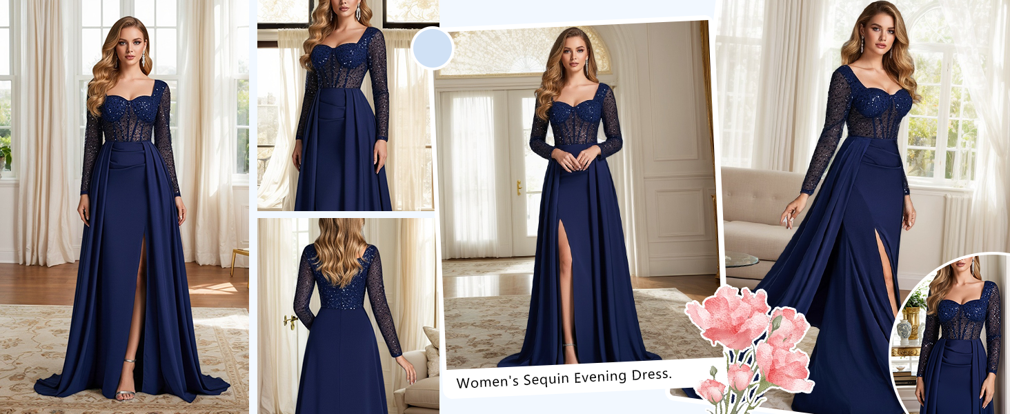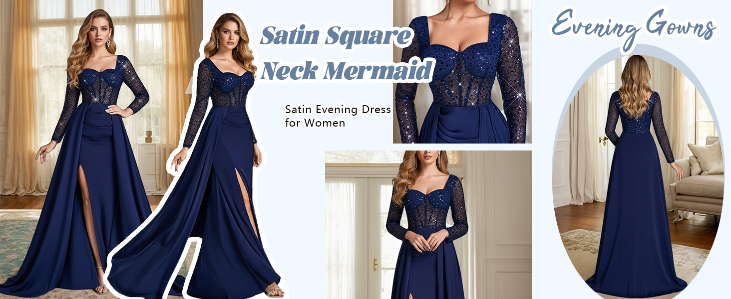 The fitted mermaid dress features a high side slit, which not only shows off your legs but also ensures your silhouette is pleasing. It perfectly highlights the high heels and adds a dynamic touch. Made of elastic, wrinkle-resistant satin fabric with a soft touch and breathable mesh, it is both comfortable and retains shape. The bone-in corset offers gentle support, so you can wear it comfortably to large events (balls, parties, weddings).
