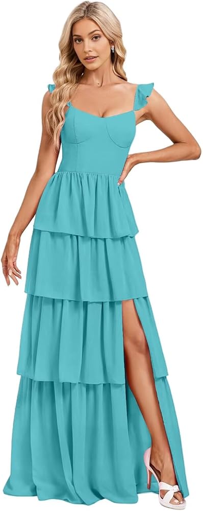 • Features: This bridesmaid dresses features chiffon, tiered, pleated, ruffles, with slit, spaghetti strap, v-neck, a-line, v neck, ruched, empire waist, high waist, split, side slit, floor length, corset, lace up back, built-in bra, this bridesmaid dress is the best choice for your different occasions