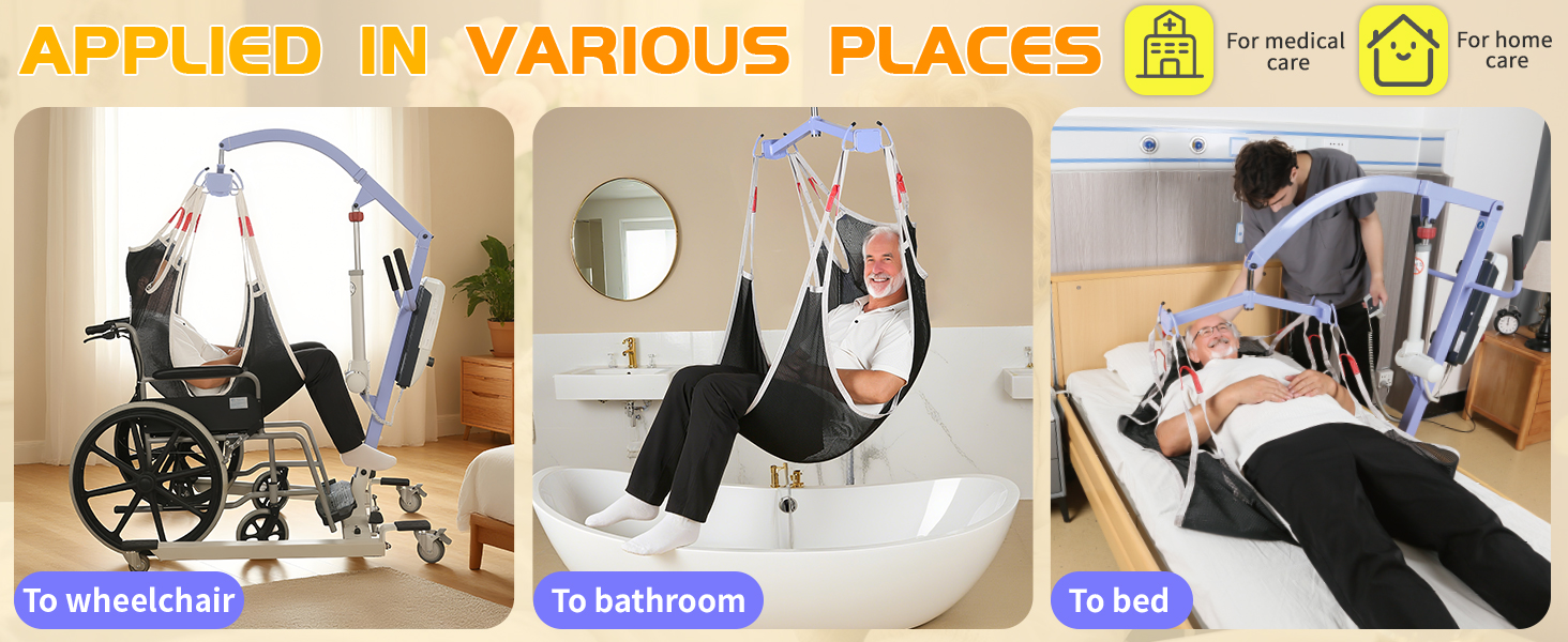 Safe & Comfortable Transfers- EZ Assistive lift sling designed for smooth patient transfers between bed, shower, chair, or toilet. The breathable mesh sling for showering ensures quick drying and hygiene, ideal for patient lift slings in home care