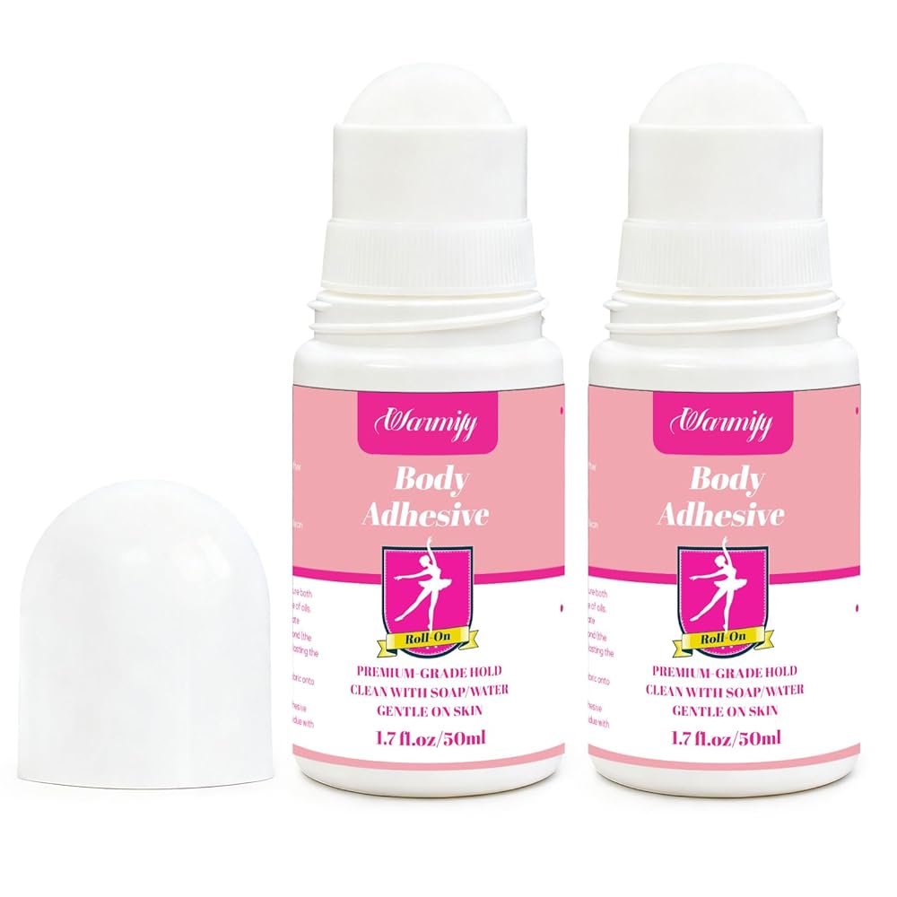 2 Pack Body Adhesive Roll On for Clothing & Skin,Strong Hold, Sweat Resistant, Easy Wash Off Body Glue for Clothes, Socks, Wigs, Costumes, Leotards, Bras – No Residue, Gentle Formula