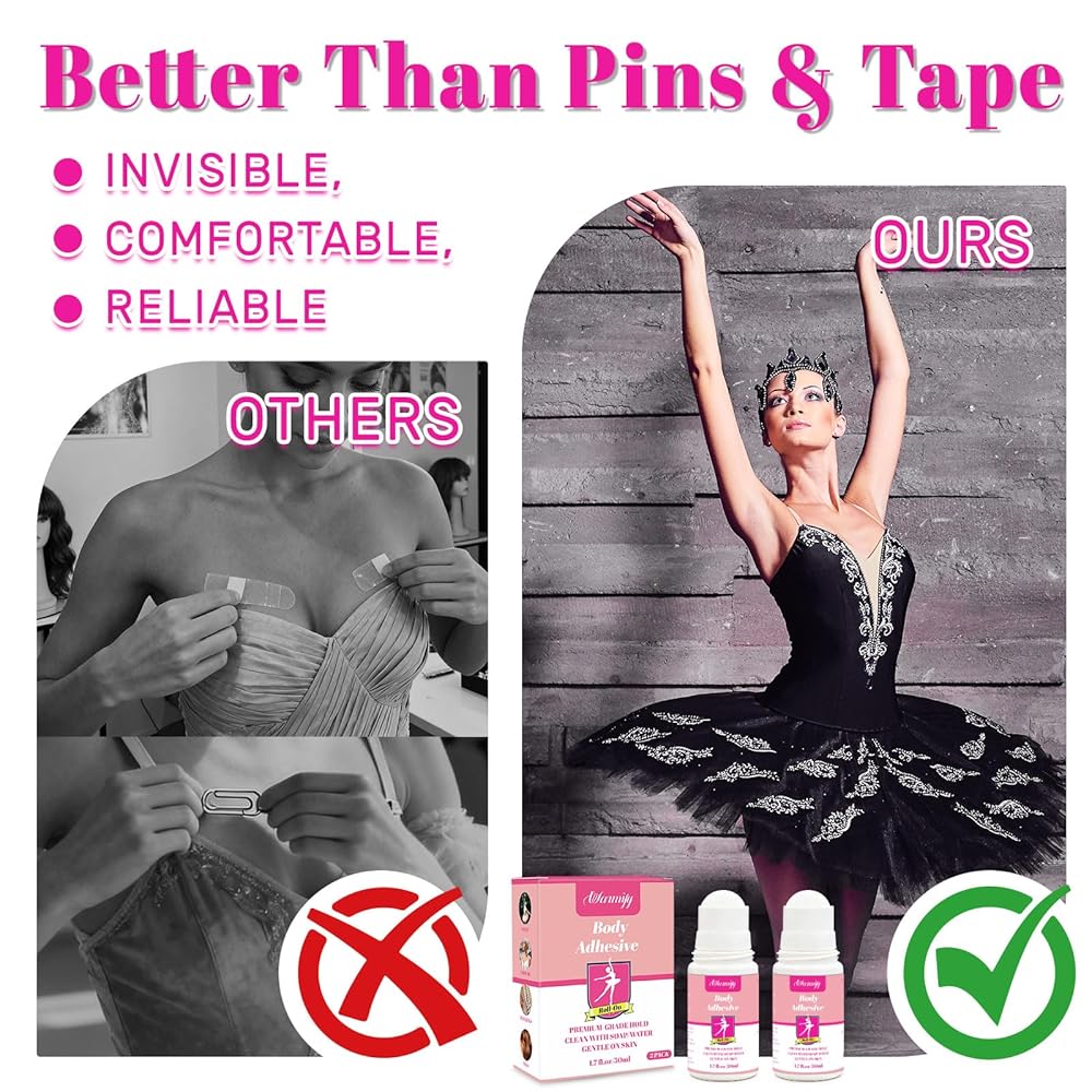 Sweat & Movement Resistant – Designed for dancers and active lifestyles, this body glue withstands sweat and humidity, keeping outfits, hosiery, and costumes secure without worry.