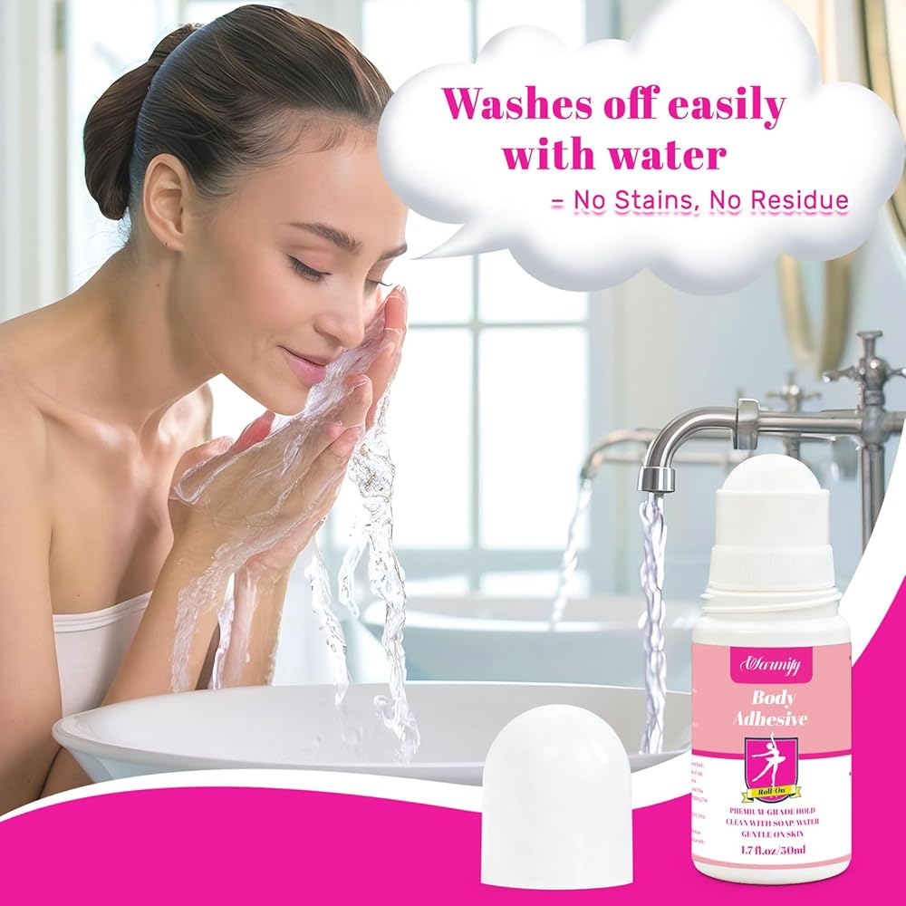 Easy Wash-Off, No Residue – Simply rinse with water to remove. Leaves skin clean and garments residue-free, making it the perfect fashion adhesive for repeated use.