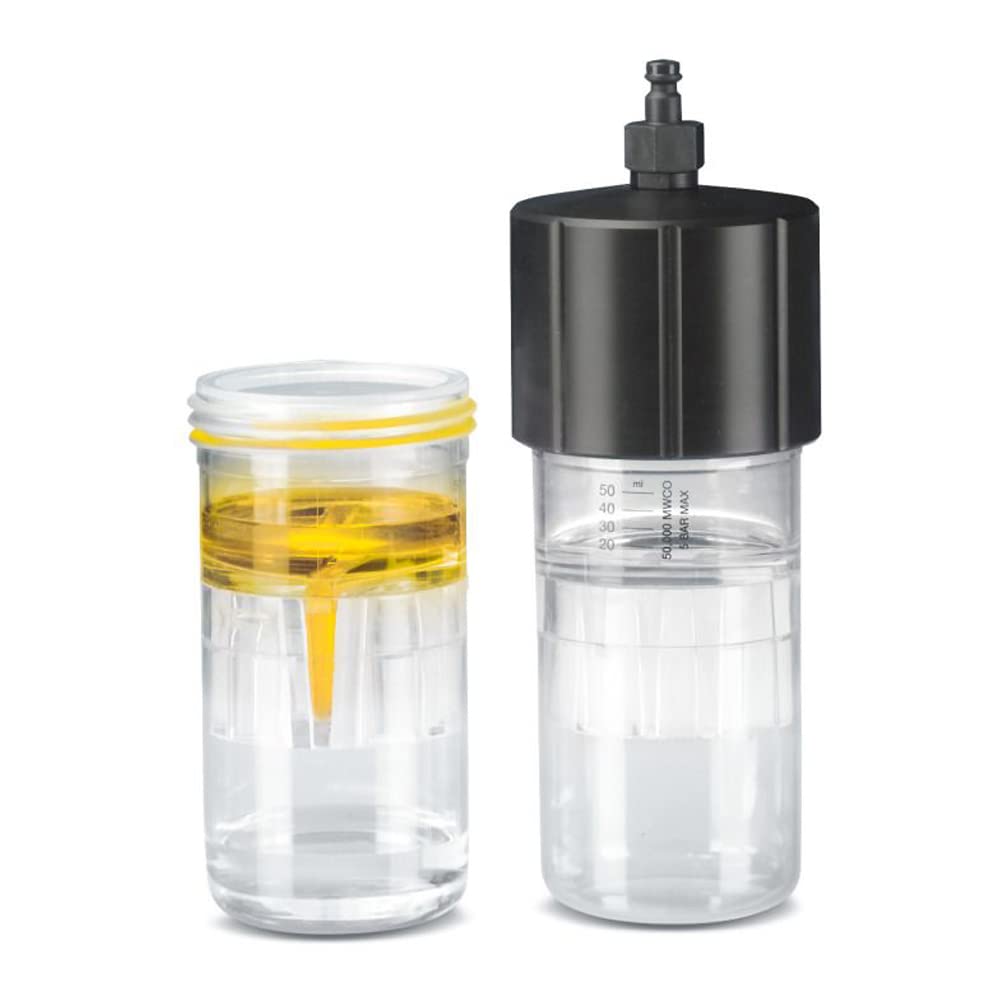 Viv cell 100 Sample concentration from 20 to 100 ml in swing bucket rotors accepting 250 ml centrifuge bottles. For highest speeds or for particularly difficult samples, pressurize the device with air or inert gas before centrifuging with pressure cap.