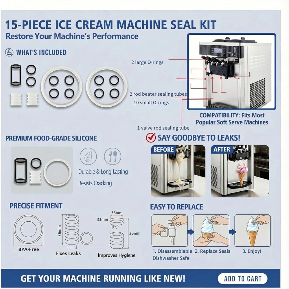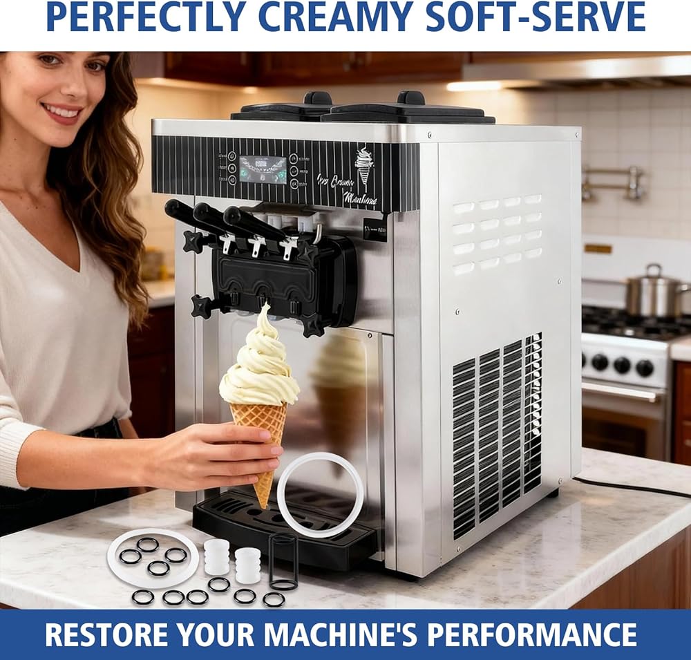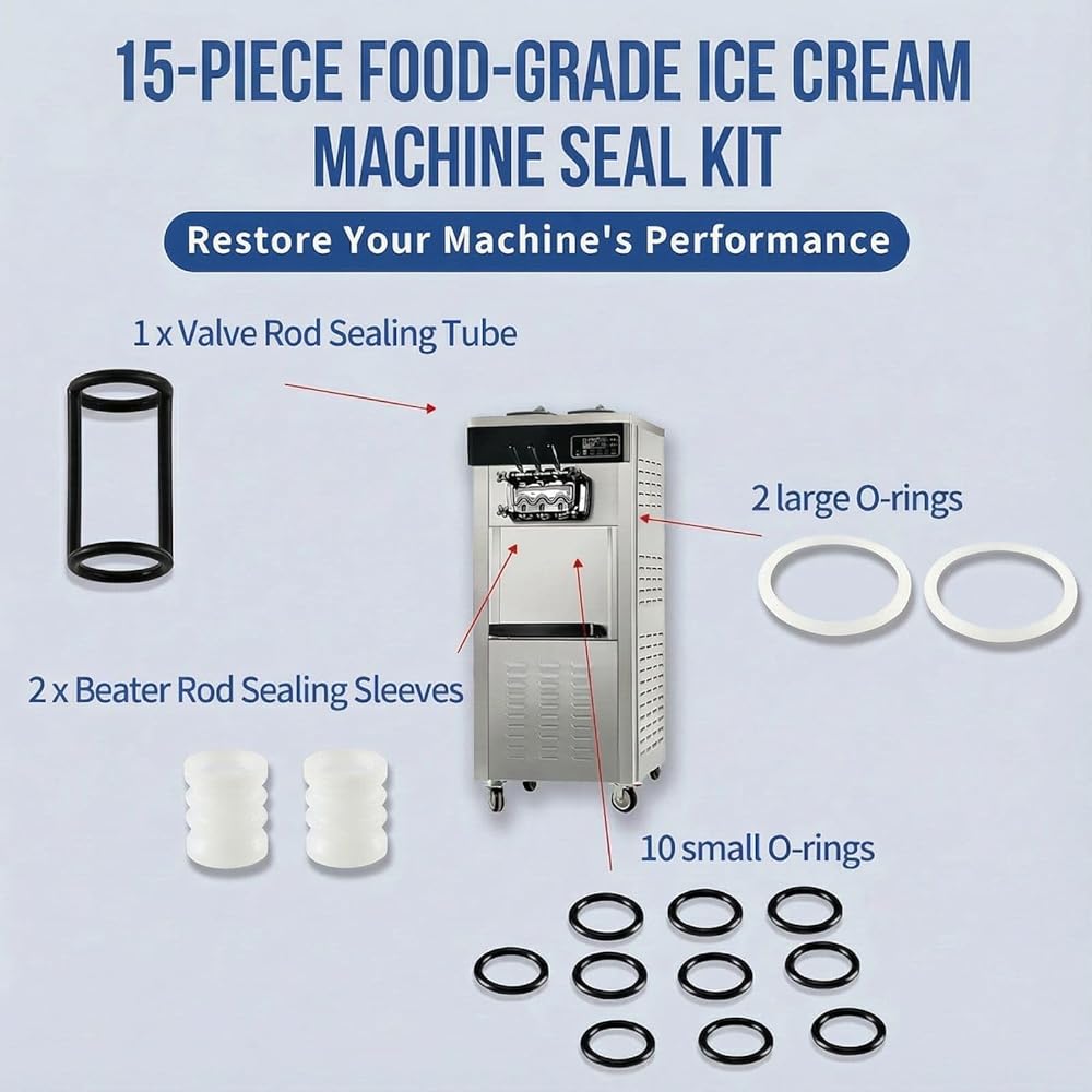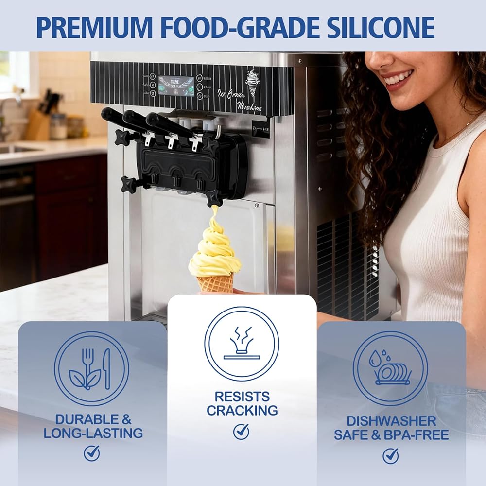 مواد صالحة للطعام متوافقة مع إدارة الغذاء والدواء الأمريكية: مصنوعة من مطاط صالح للطعام بنسبة 100%، هذه الحلقات والحشيات عديمة اللون والرائحة ومتوافقة مع إدارة الغذاء والدواء الأمريكية، مما يضمن سلامة الطعام في كل دفعة. مثالية للاستخدام في آلات الآيس كريم في المنزل أو المقاهي أو المطاعم أو محلات الآيس كريم