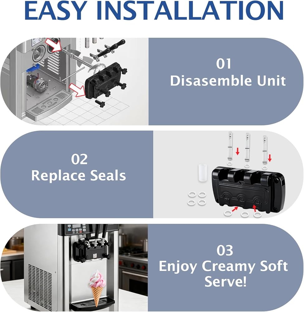 تركيب سهل لصيانة خالية من المتاعب: تم تصميم أختام ماكينة الآيس كريم هذه للتركيب السريع والسهل، وتتميز بتصميم واضح وسهل الاستخدام للاستبدال المباشر. تتميز المجموعة بأنها خفيفة الوزن وسهلة الاستخدام، مما يساعدك على صيانة جهازك بأقل جهد