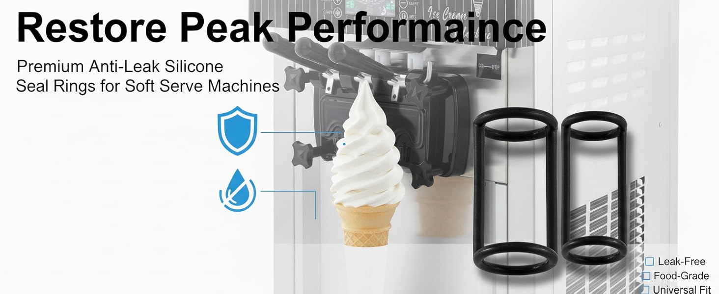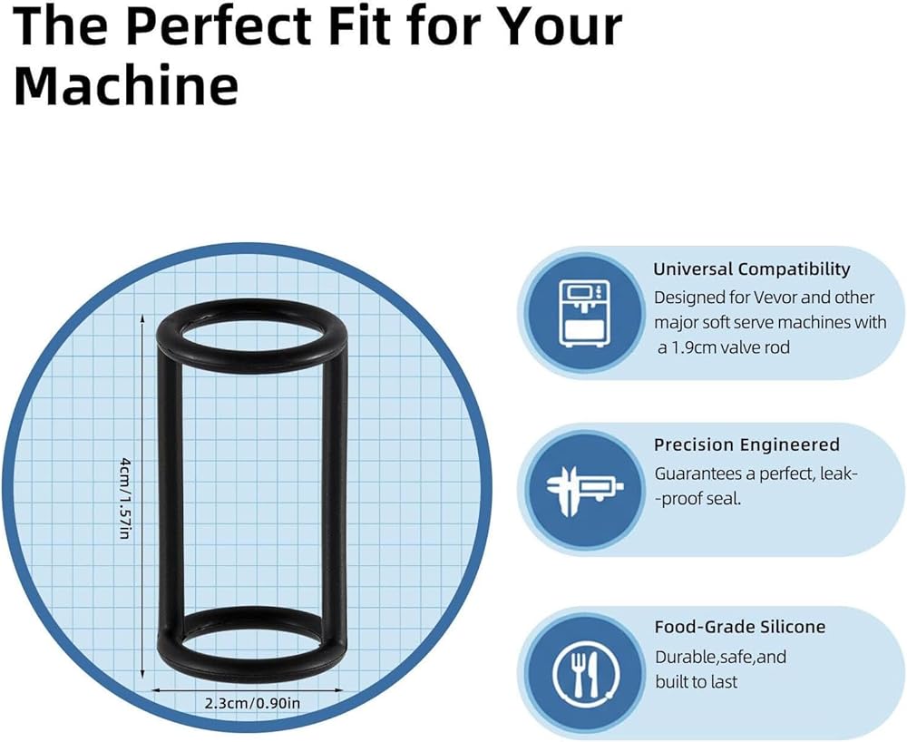 قطع غيار ماكينة الآيس كريم - حشية حلقة إغلاق من السيليكون لصانعة الآيس كريم الناعمة - مجموعة سدادات مطاطية من الدرجة الغذائية (عبوتان) - متوافقة مع VEVOR