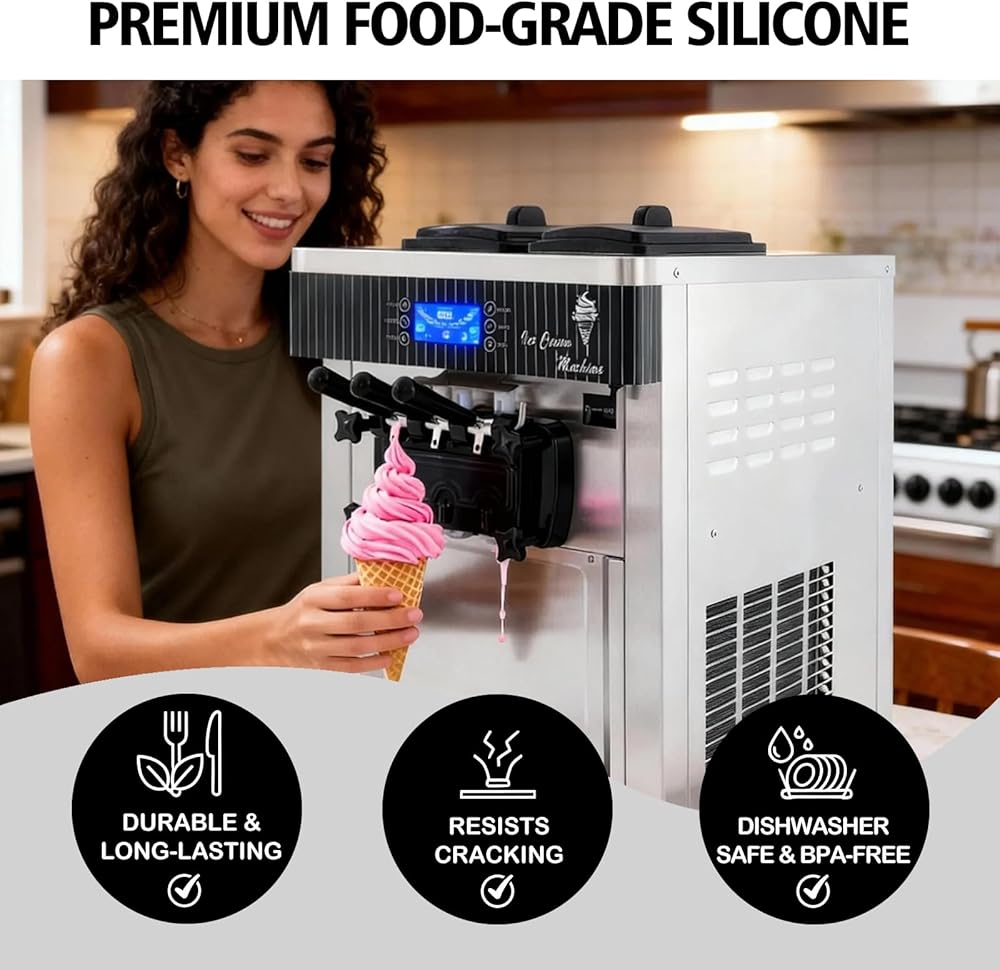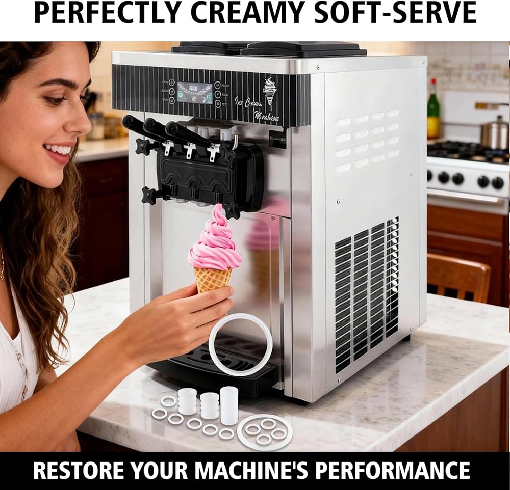 سيليكون ممتاز للطعام | آمنة وصحية: مصنوعة من السيليكون الخالي من البيسفينول A بنسبة 100% وعديم الرائحة، هذه الحلقات والأختام لآلة الآيس كريم مصنوعة من أجل الاتصال المباشر بالطعام، مما يضمن النقاء والنظافة. مثالي لكل من آلات الآيس كريم التجارية وصانعي الآيس كريم السكني، حيث يوفر السيليكون المخصص للطعام راحة البال بأن حلوى الخدمة الناعمة الخاصة بك آمنة وعالية الجودة.