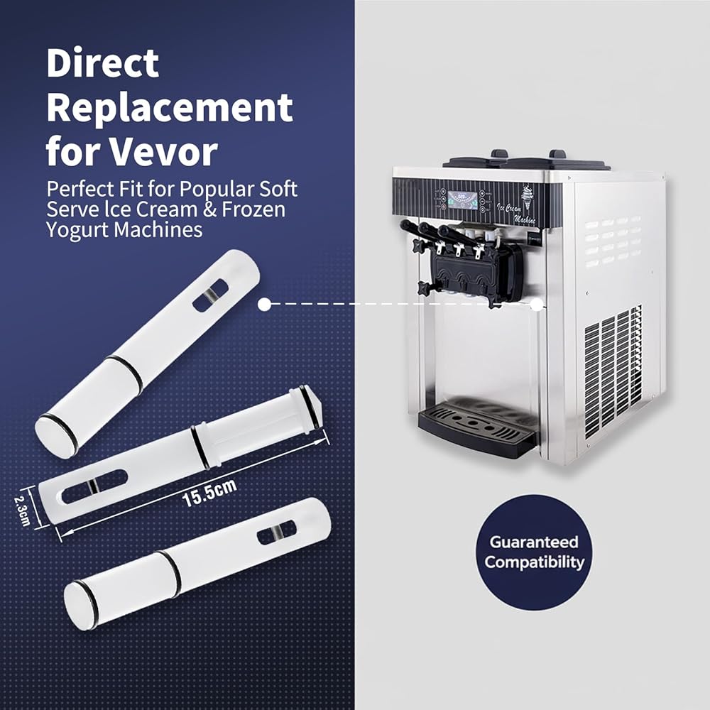 قضبان مكبس عالمية مقاس 16 سم للتوافق الواسع: تم تصميمها لتناسب مجموعة متنوعة من آلات الآيس كريم الناعمة، وتضمن قضبان المكبس مقاس 16 سم لدينا استبدالًا مثاليًا. تصميمها متعدد الاستخدامات يجعلها حلاً مثاليًا للعديد من النماذج التجارية والمنزلية الشهيرة