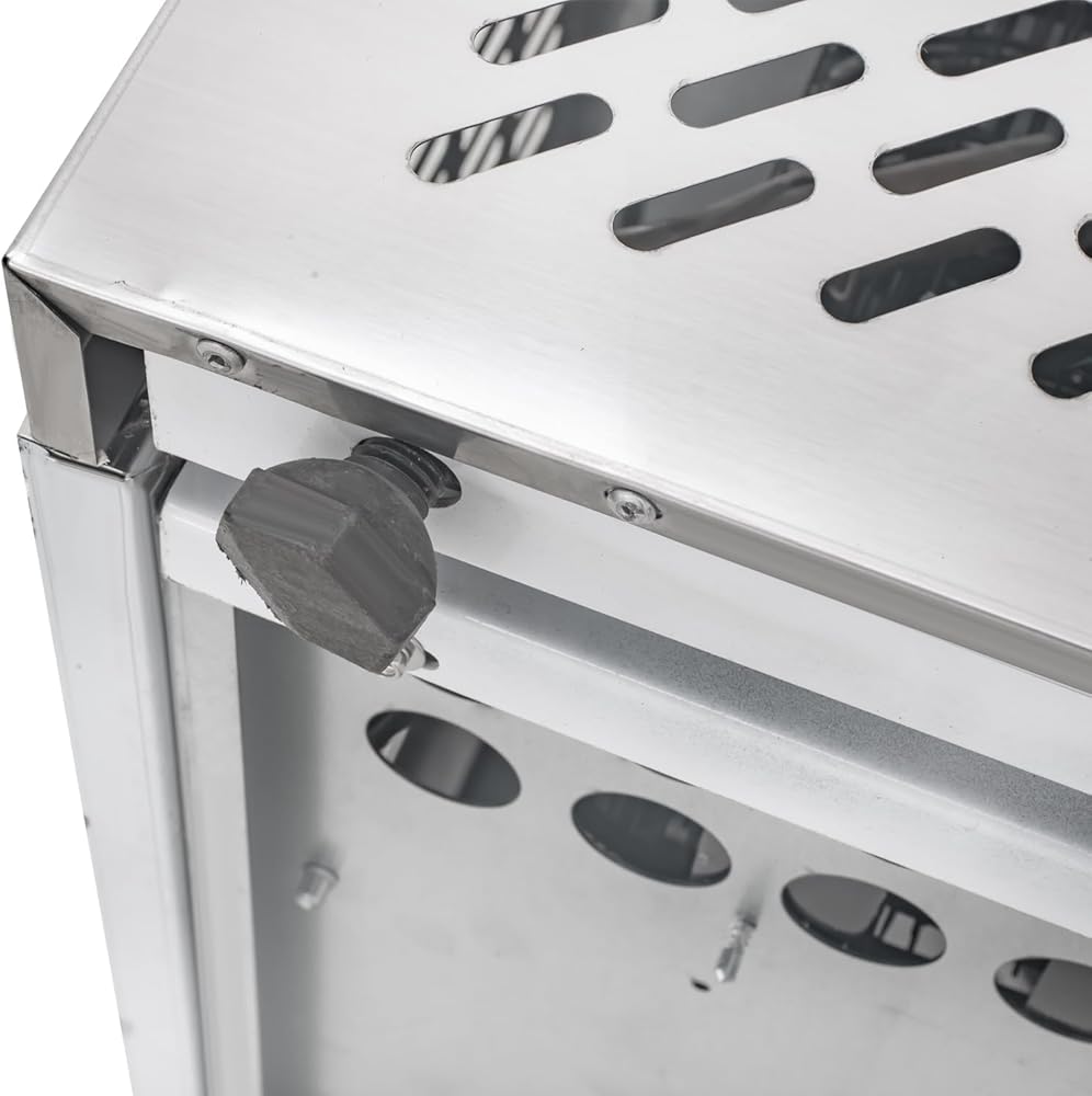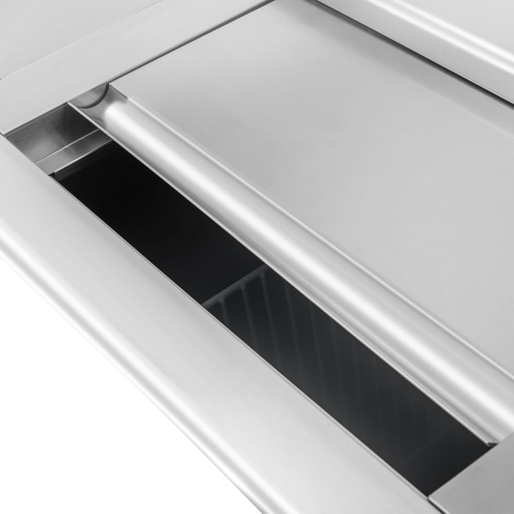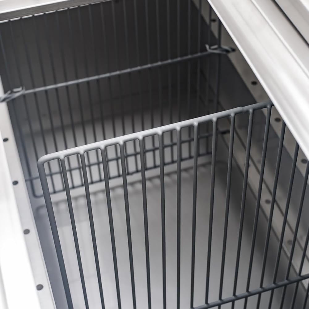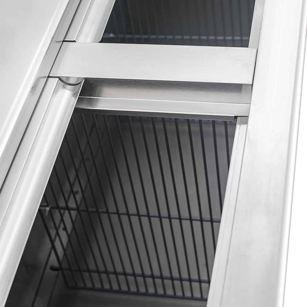 Crafted from commercial-grade 304 stainless steel, the exterior resists corrosion, fingerprints, and is easy to clean. The sturdy handle and smooth-rolling casters ensure effortless mobility for cleaning or layout changes.