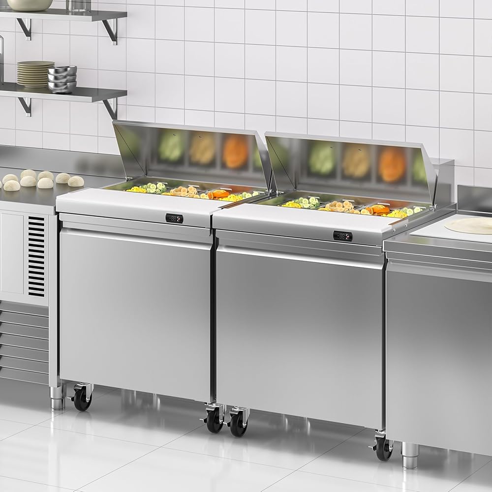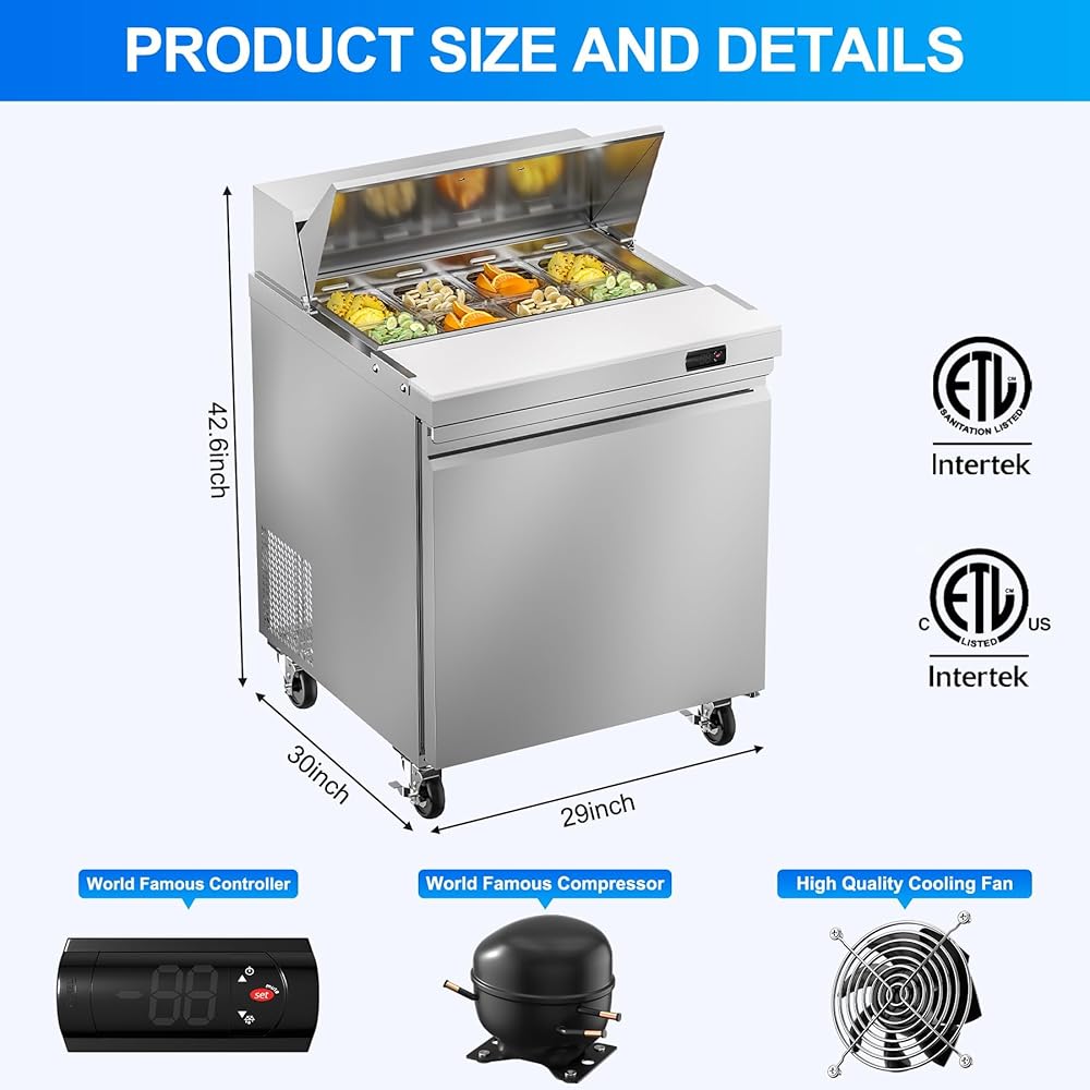 • Reliable After-Sales Support: The commercial refrigerator food prep table fridge is ETL certified, it meets stringent US safety and hygiene standards, ensuring safe use in commercial kitchen environments. we provide comprehensive after-sales support, including 2 years of free maintenance service and 3 years of free compressor maintenance service. If you have any questions, our dedicated team is ready to assist you within 12 hours