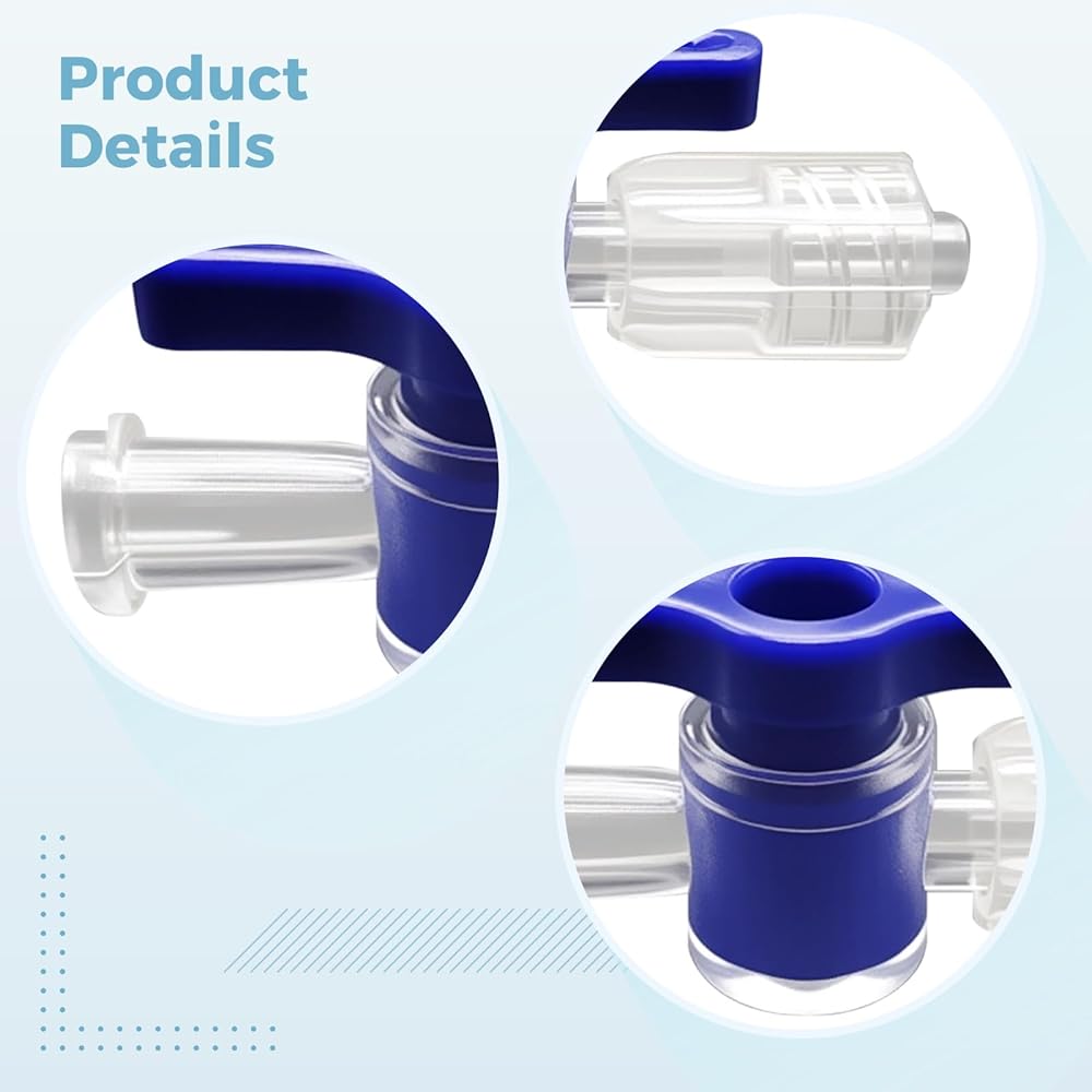 Color:transparent+blue Material:plastic Product Size: 1.57×0.76 in Package Includes:15×Two-Way Stopcock Luer Note: - Please refer to the measurement. Tiny measuring error is allowable in normal range. - There might be a little color difference due to the monitor, camera or other factors, please refer to the physical item.