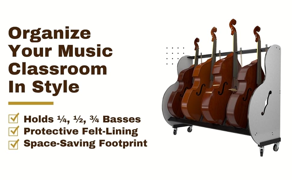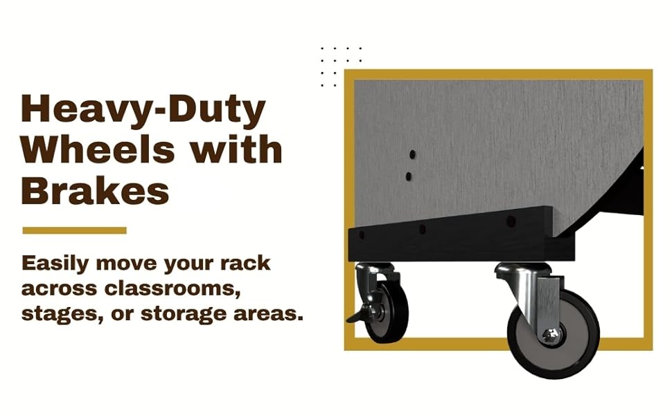 - يتضمن عجلات شديدة التحمل وسرعة الحركة والنقل السلس داخل الفصل الدراسي الموسيقي الخاص بك