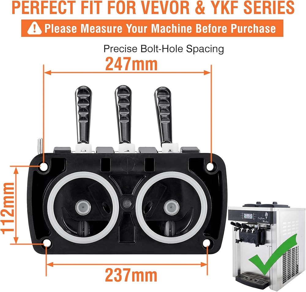 باب تفريغ الموزع ذو اللوحة الأمامية من FixoTech متوافق مع ماكينات الآيس كريم VEVOR YKF الناعمة - مجموعة كاملة من لوحة الواجهة مع 3 مقابض وقضبان الصمامات والأختام - أجزاء تجارية من درجة الطعام