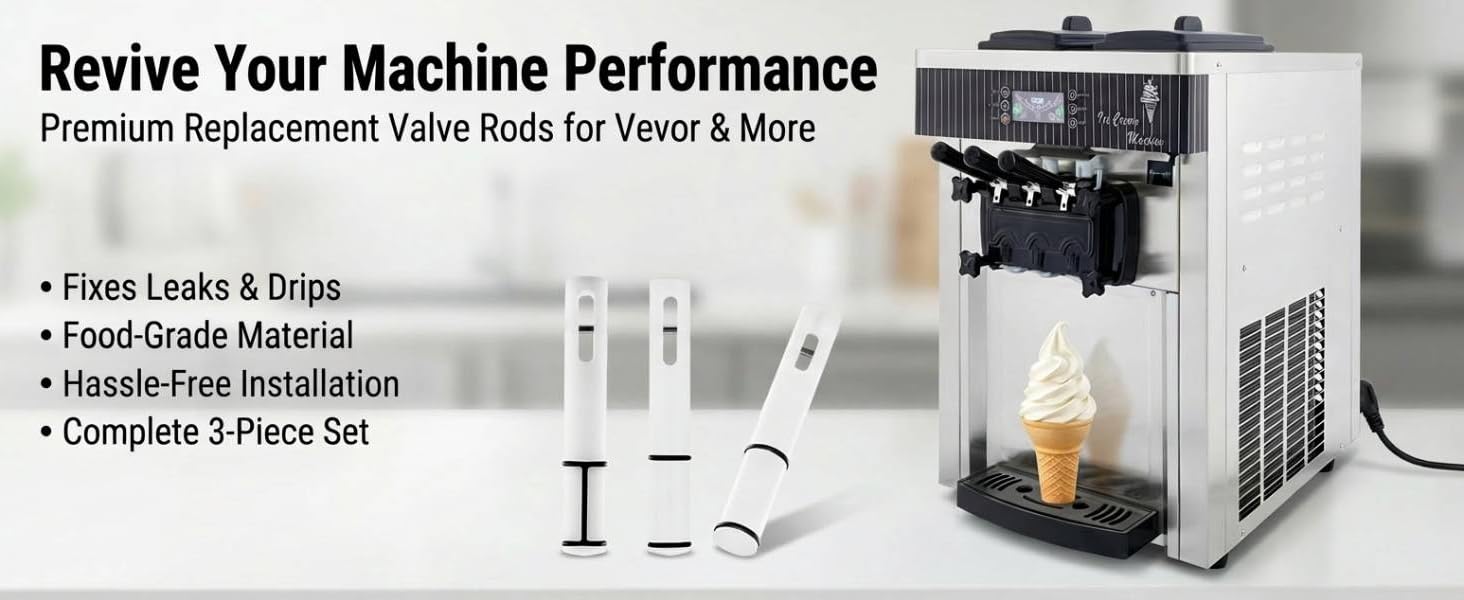 ملاءمة دقيقة لآلات VEVOR وYKF: تم تصميمها خصيصًا كبديل مباشر لآلات الخدمة الناعمة التجارية VEVOR وYKF. طول القضيب: 16 سم (حوالي 6.3 بوصة). يرجى التحقق من أن طول قضيب الصمام الأصلي الخاص بك يطابق 16 سم قبل الشراء لضمان ملاءمة مثالية ومقاومة للتسرب.