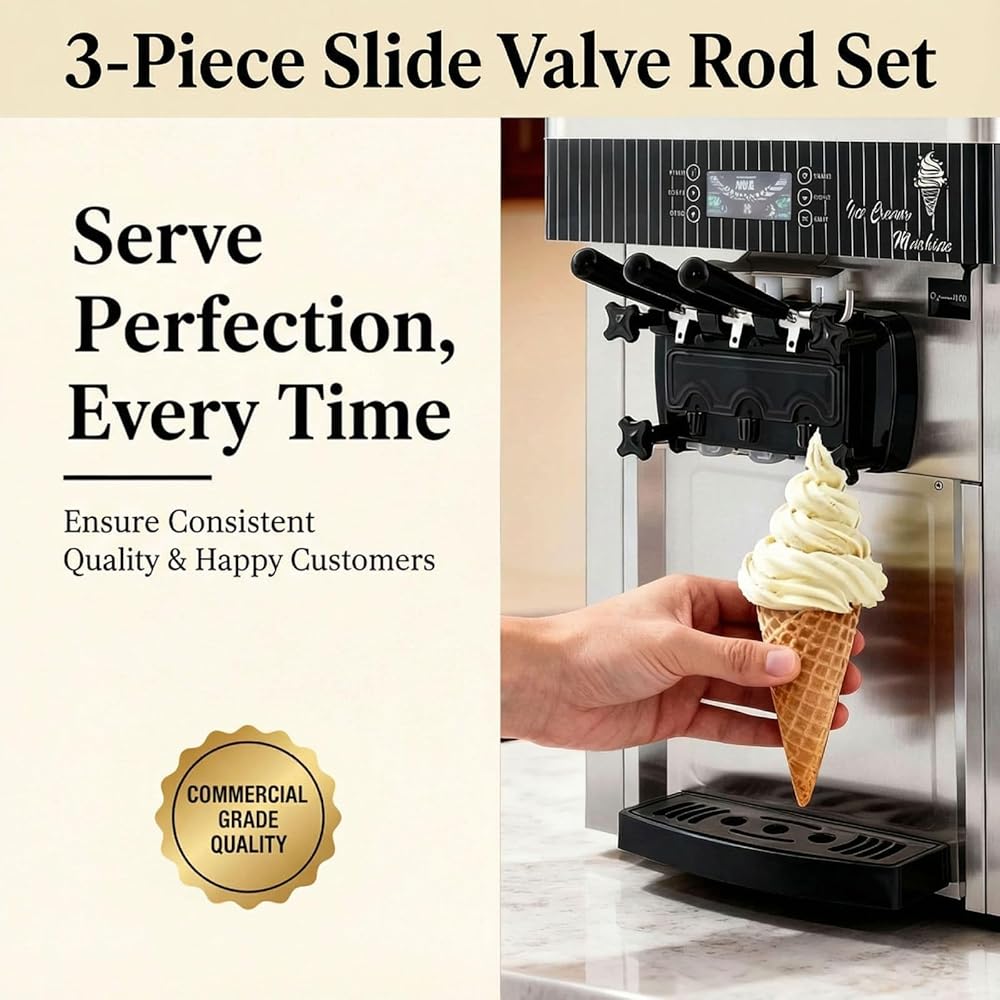 مجموعة كاملة مكونة من 3 قطع لإصلاح ماكينة الآيس كريم بسهولة: تشتمل مجموعة قضبان الصمامات الشاملة المكونة من ثلاث قطع على قضيبين صمام جانبي وقضيب صمام وسطي مع أختام. إنه الحل المثالي لإصلاح ماكينة الآيس كريم، حيث يوفر جميع قطع الغيار اللازمة لماكينة الآيس كريم لإصلاح خالٍ من المتاعب